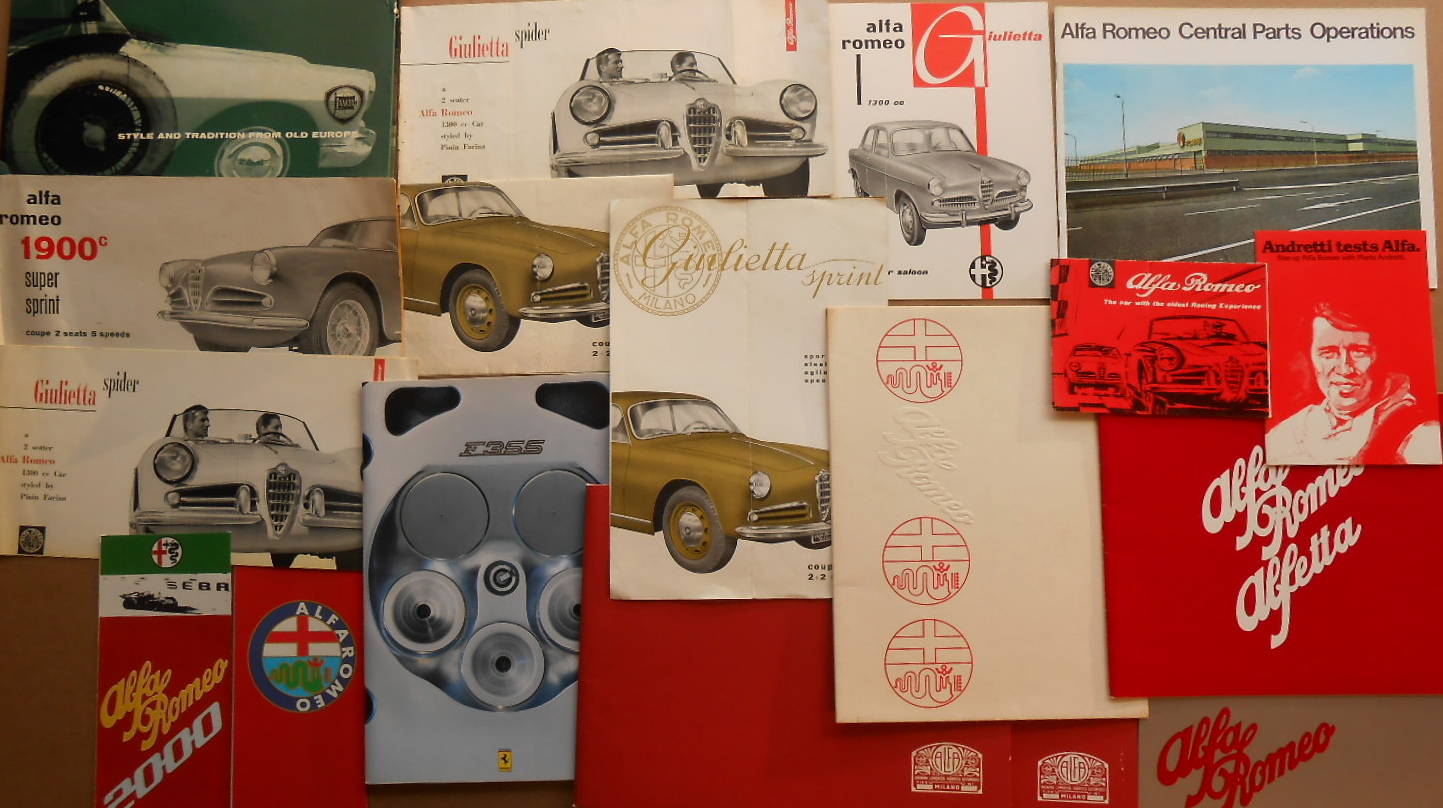 Twenty brochures total misc items – Alfa Romeo, incl one Lancia and one Ferrari
