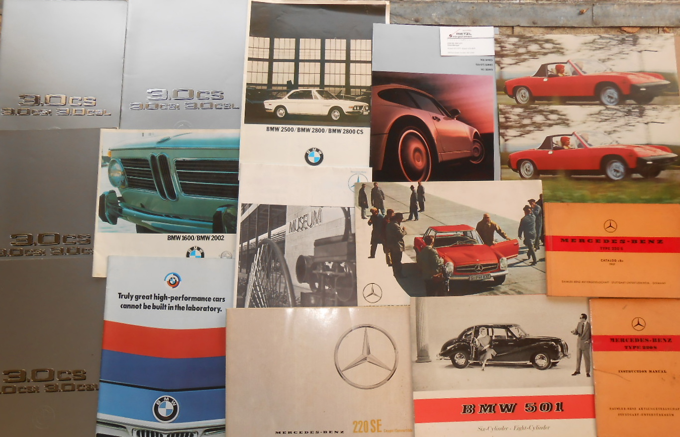 26 broc misc sheets – Mercedes Benz, BMW, Porsche non 356, 911, 912 items
