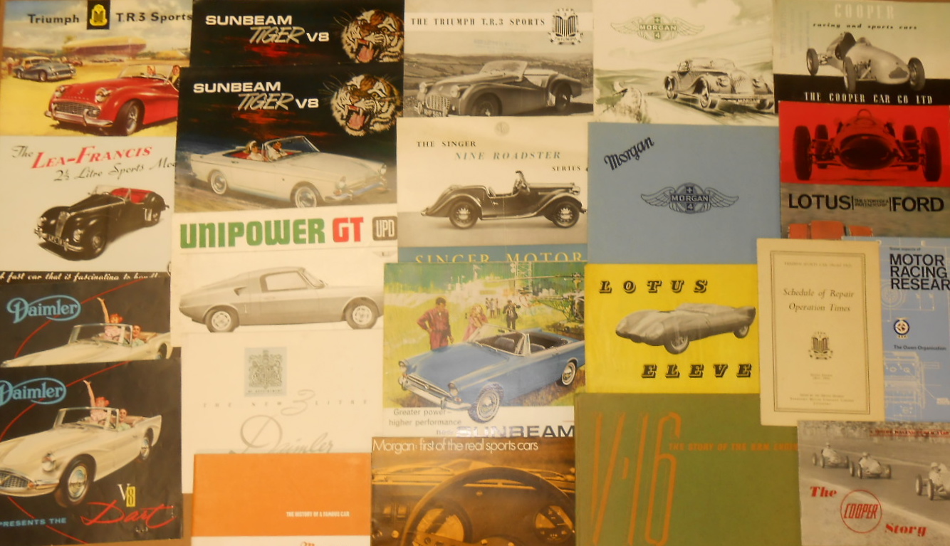 Thirty two broc misc items – Morgan, Lotus, Sunbeam, Berkley, Triumph, Cooper, misc accys