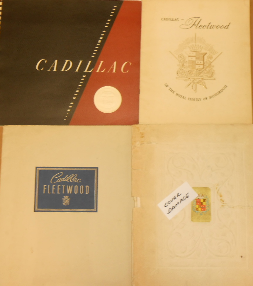 4 lg Cadillac – 1936 Fleetwood portfolio, 1938 Fleetwood catalog, 1941 spiral bound, 1933