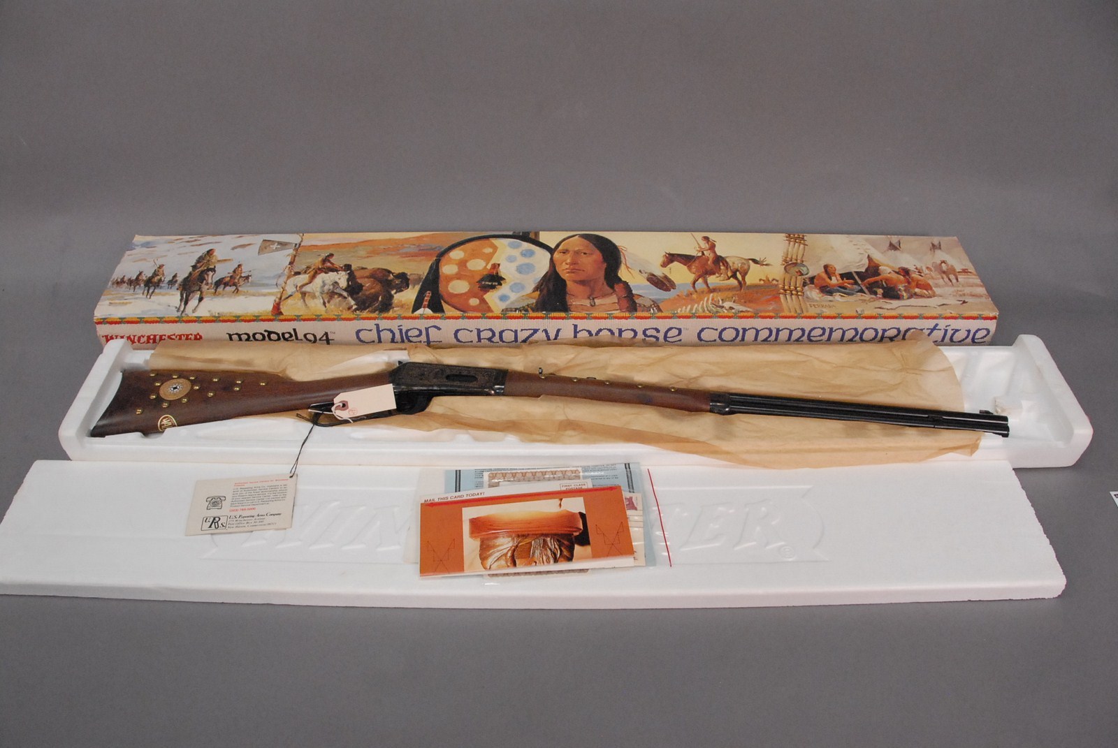 Winchester model 94 rifle, Chief Crazy Horse commemorative, lever action rifle, .38-55 caliber, 24 barrel, in original box still having original paper. 48 SN-CCH17759