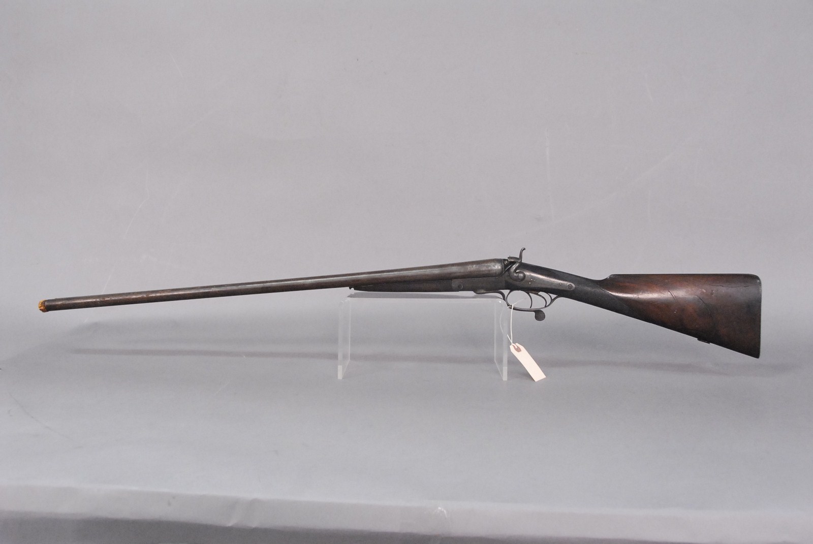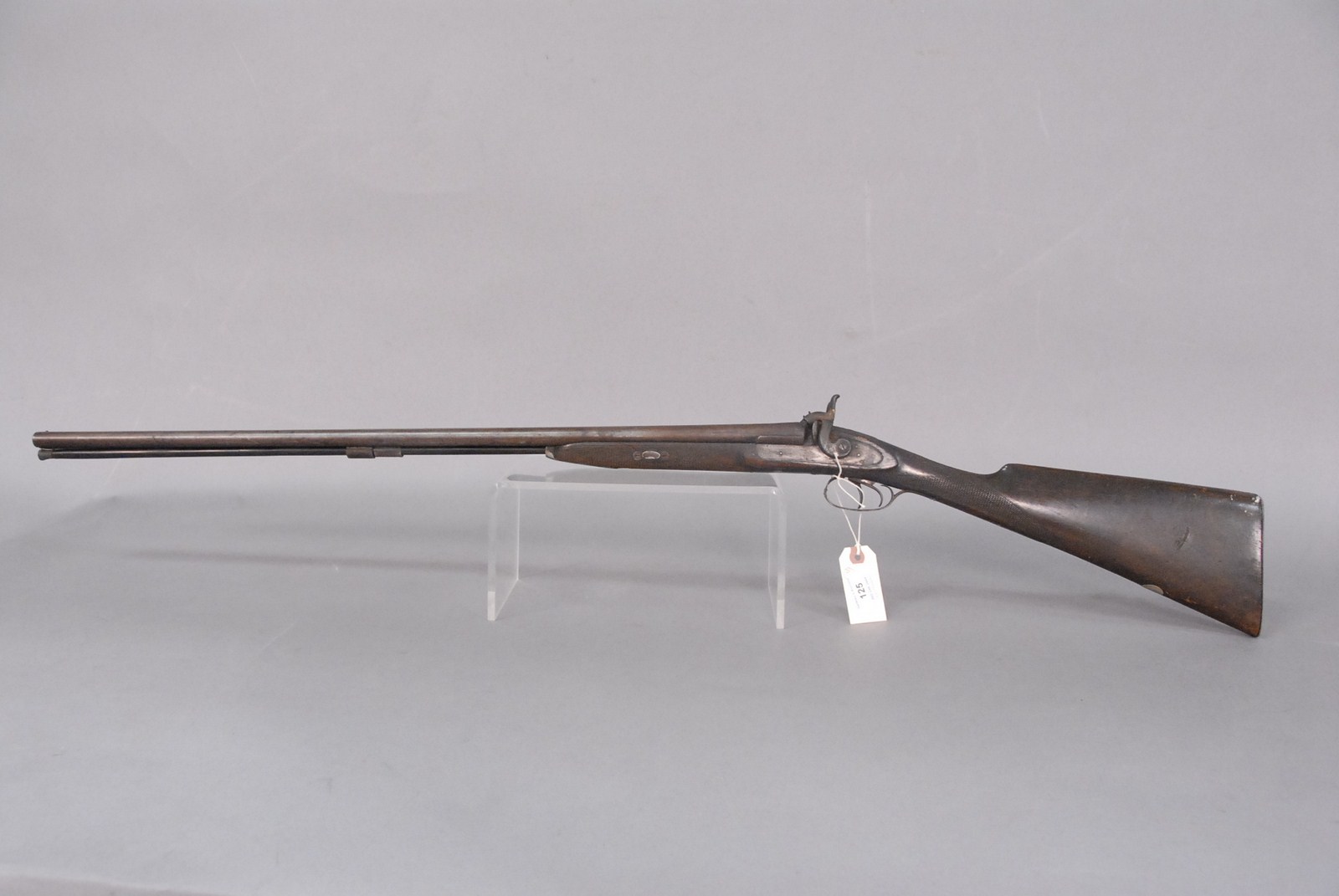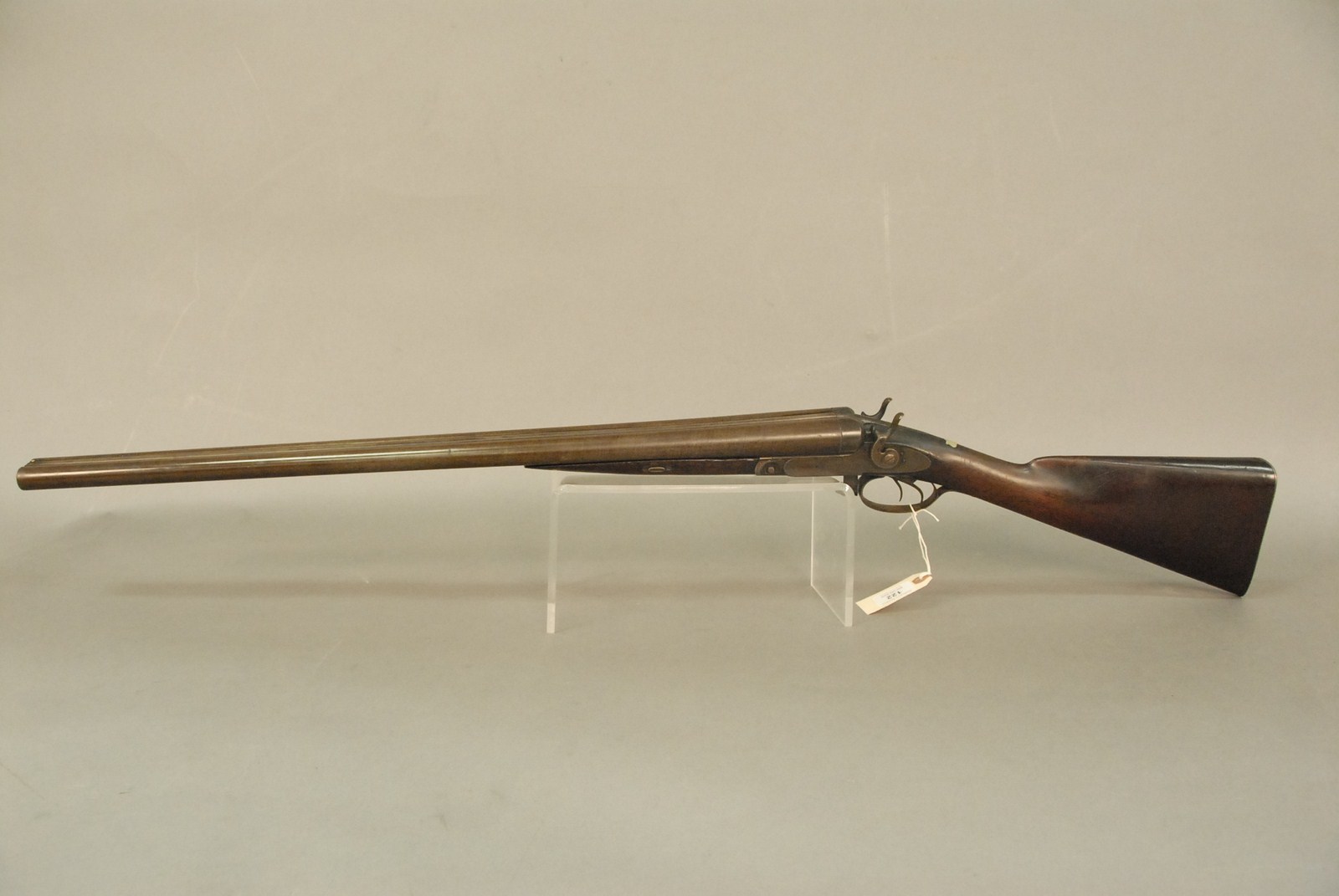 Two piece lot to include Bonehill London double barrell, 12 gauge hammer shotgun, broken butt stock and Double barrel percussion 12 gauge shotgun, as is.
