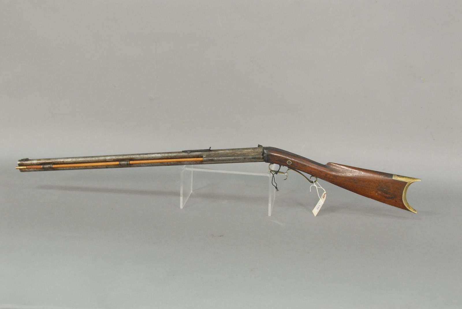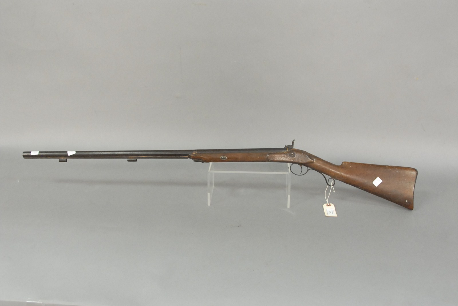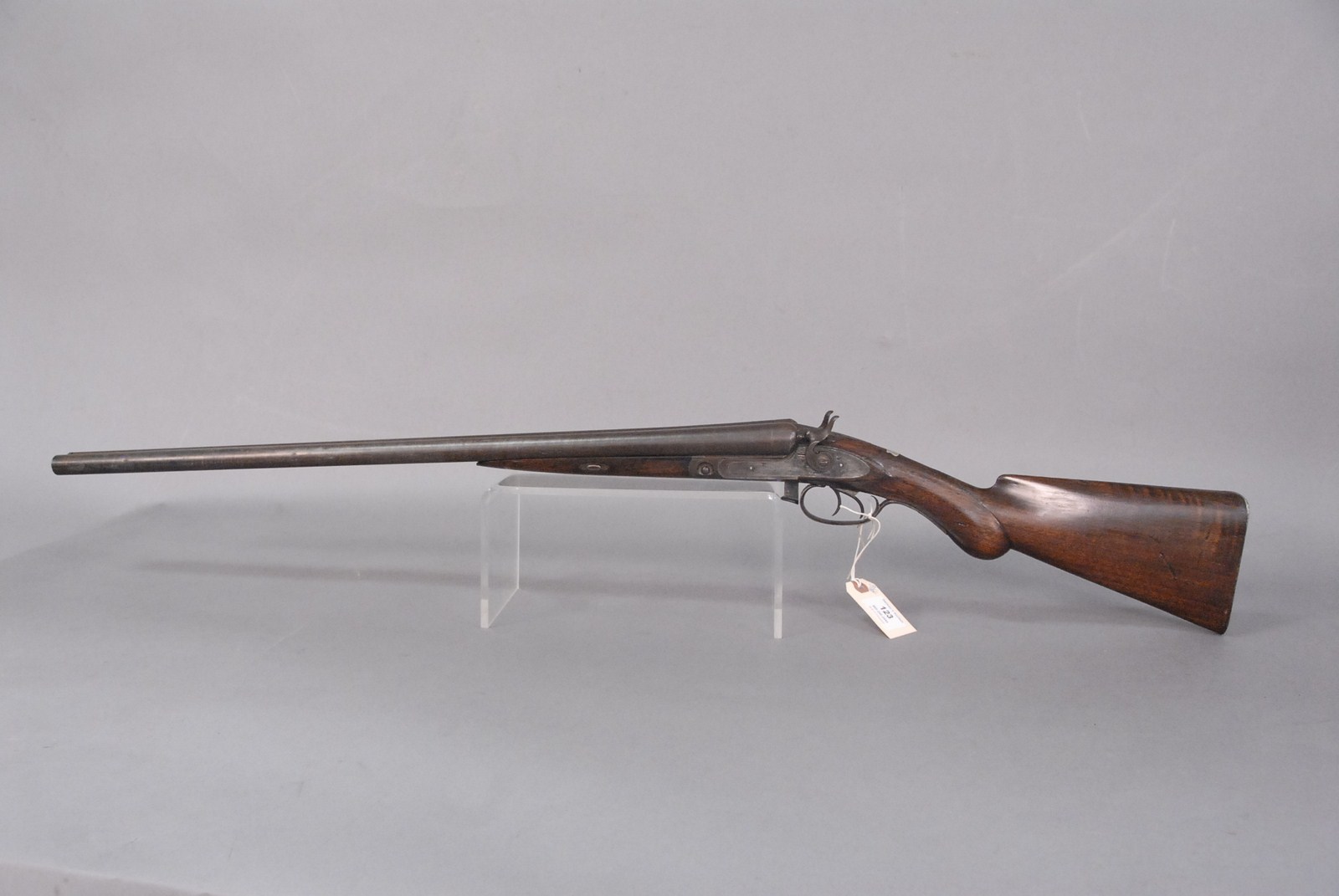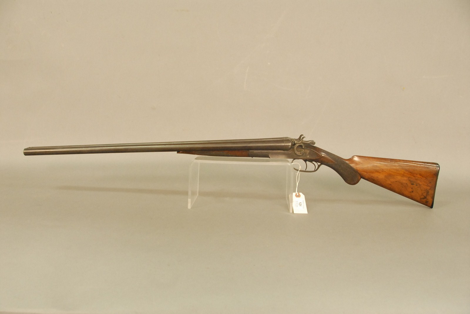 Two piece lot to include Bonehill London double barrell, 12 gauge hammer shotgun, broken butt stock and Double barrel percussion 12 gauge shotgun, as is.