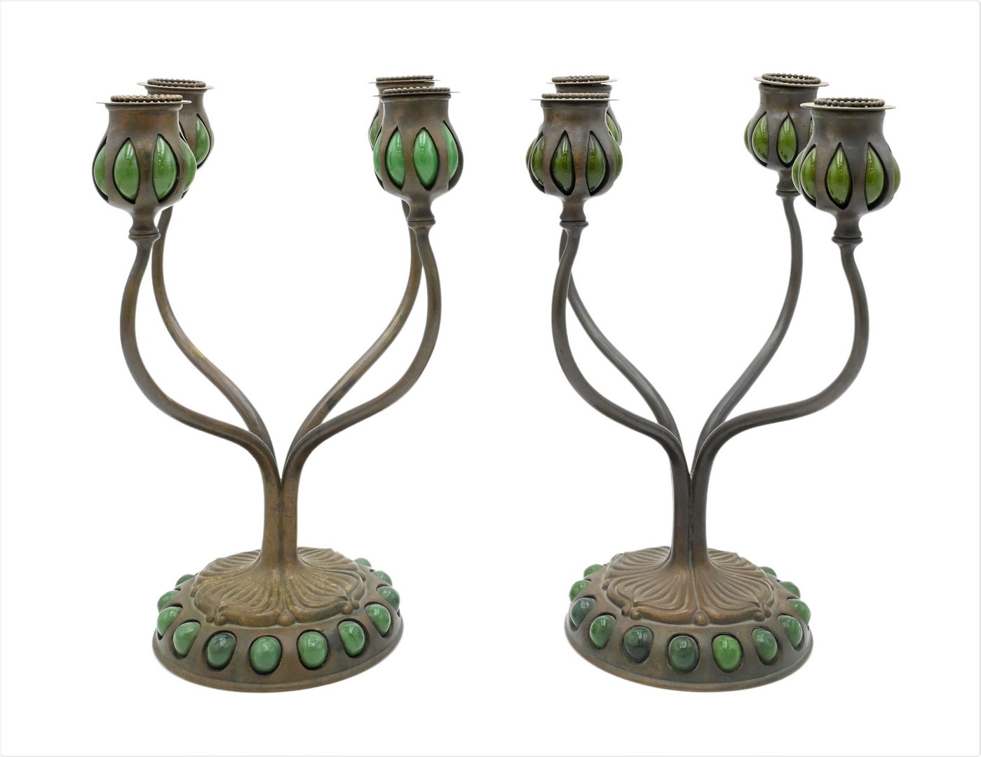 each having a swirl-molded foot and stem, along with a spire finial issuing faceting lusters
