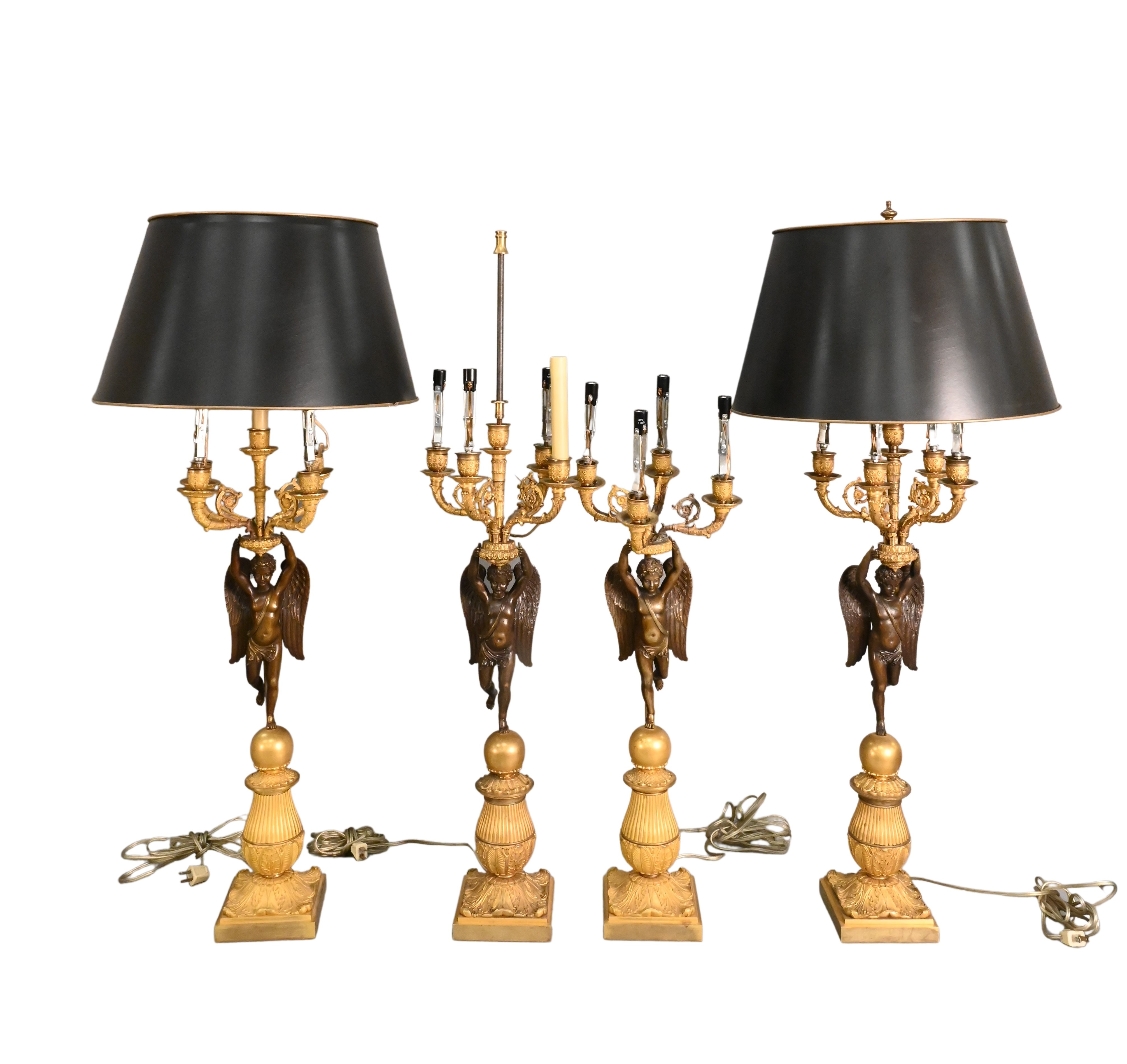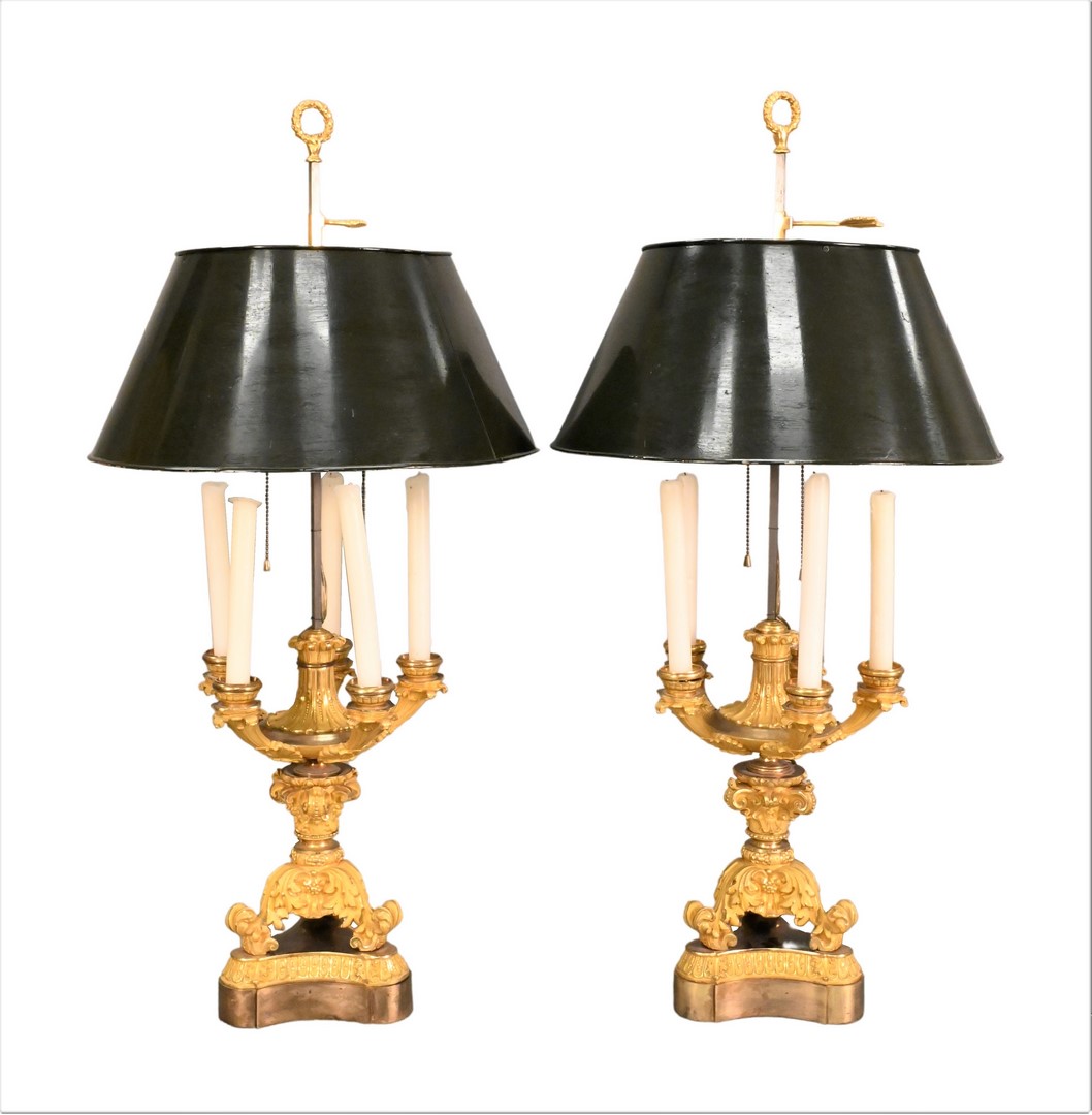 A Pair of Louis-Philippe Ormolu Bronze Five-Light Candelabra Bouillotte lamps