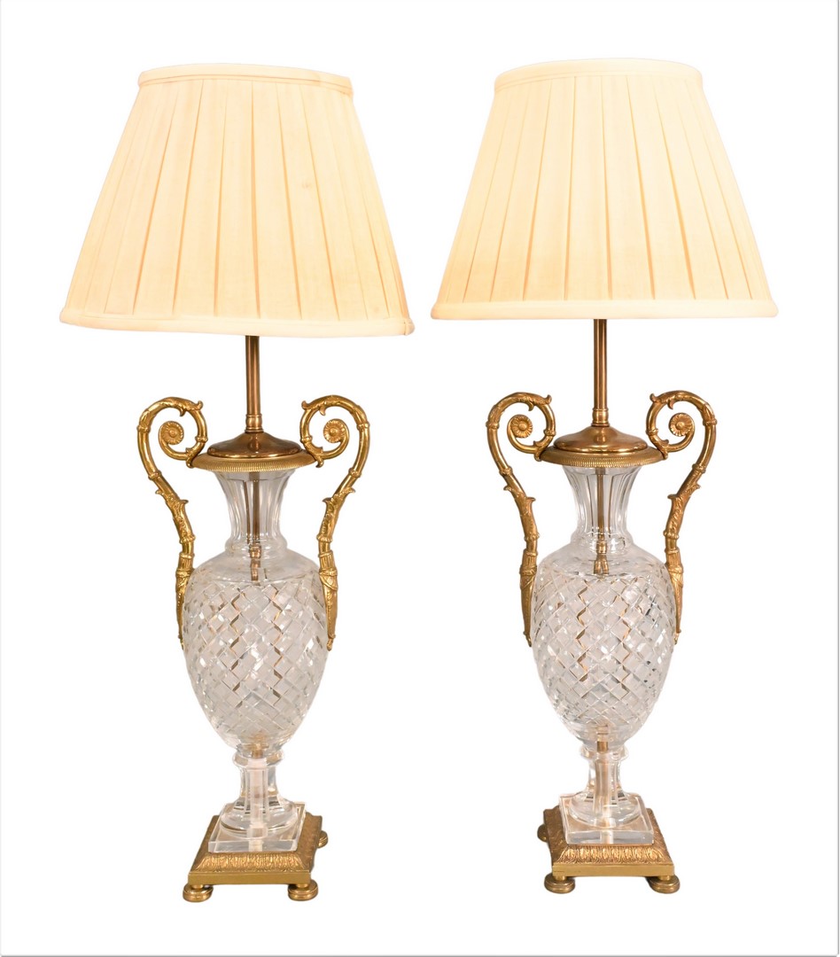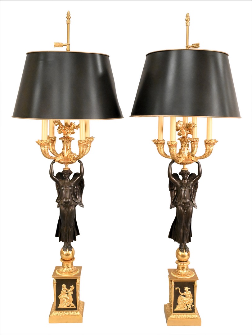 A Pair of Empire Gilt and Patinated-Metal Table Lamps