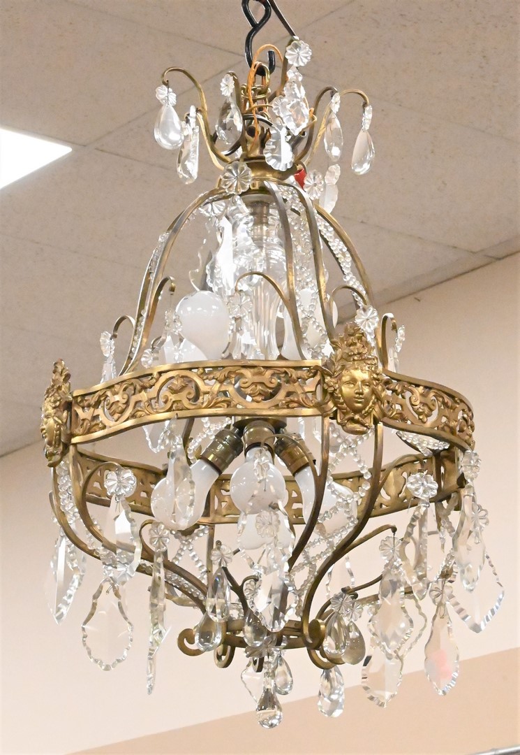 Condition: overall fair condition, internally wired, some chips and losses to glass prisms, rubbing to gilded areas
