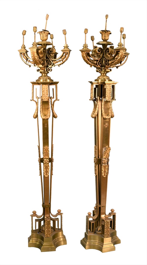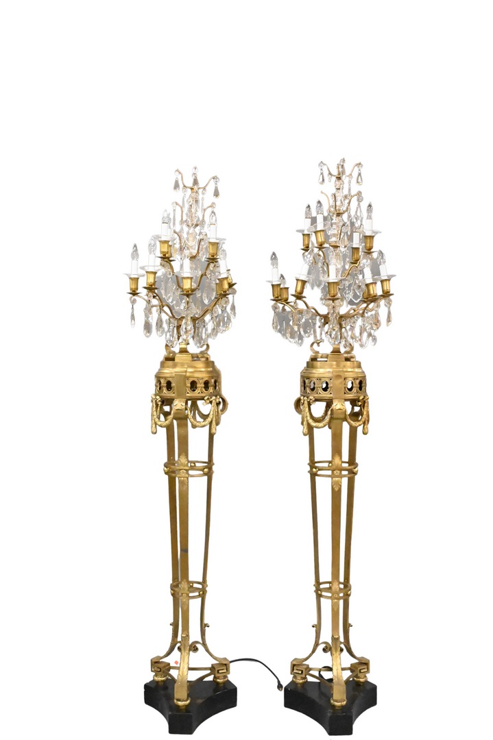 A Pair of Louis XVI Style Gilt Metal Five Light Torcheres