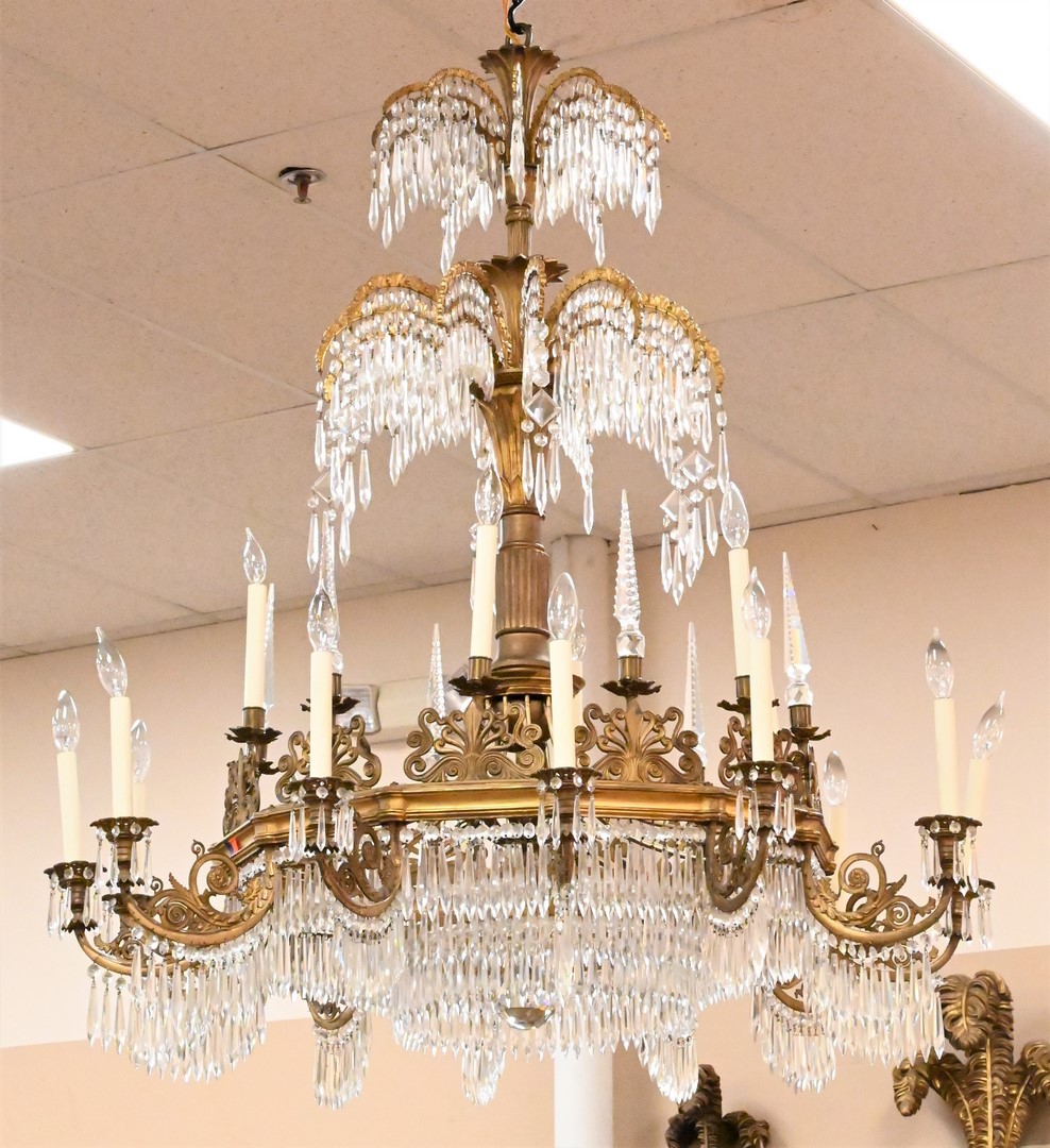 Baltic Gilt-Bronze and Cut-Glass 18 Light Chandelier