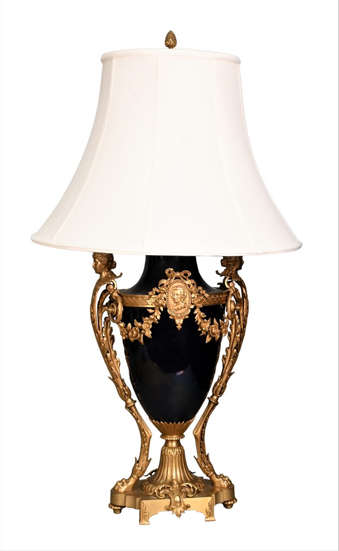 Attributed to Sevres Ormolu-Mounted Dark Blue Ground Vase and Cover Mounted as a Lamp
