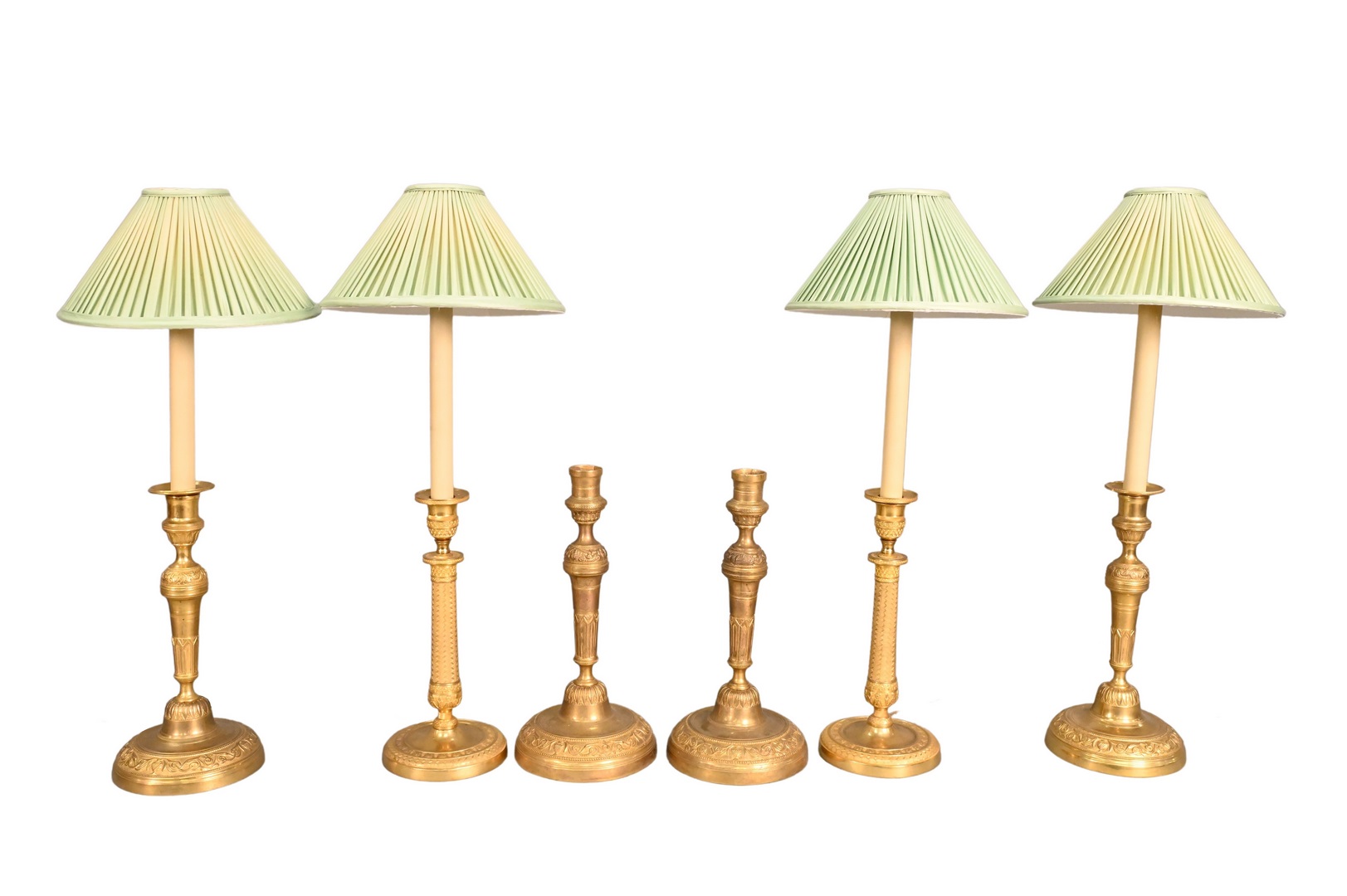 Three Pairs of Continental Gilt-Metal Candlesticks