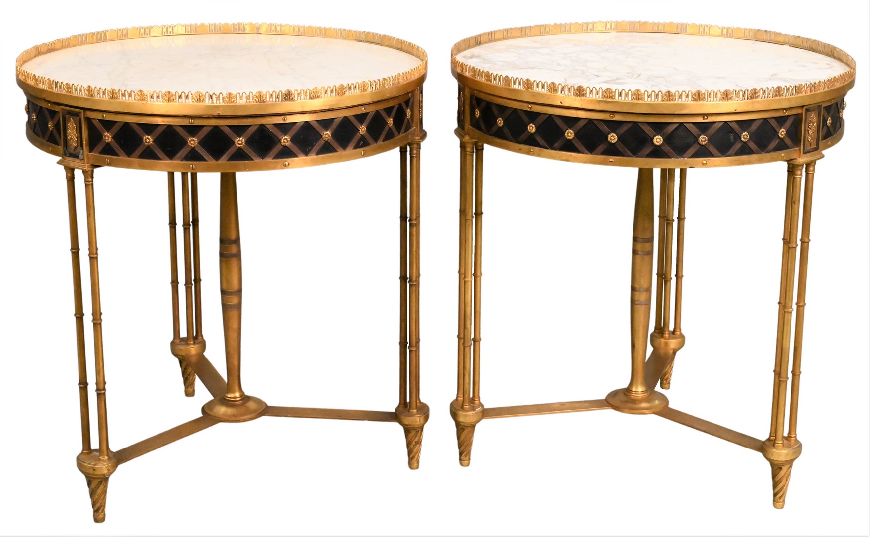 A Pair of Louis XVI Style Gilt Bronze Iron Gueridon Tables