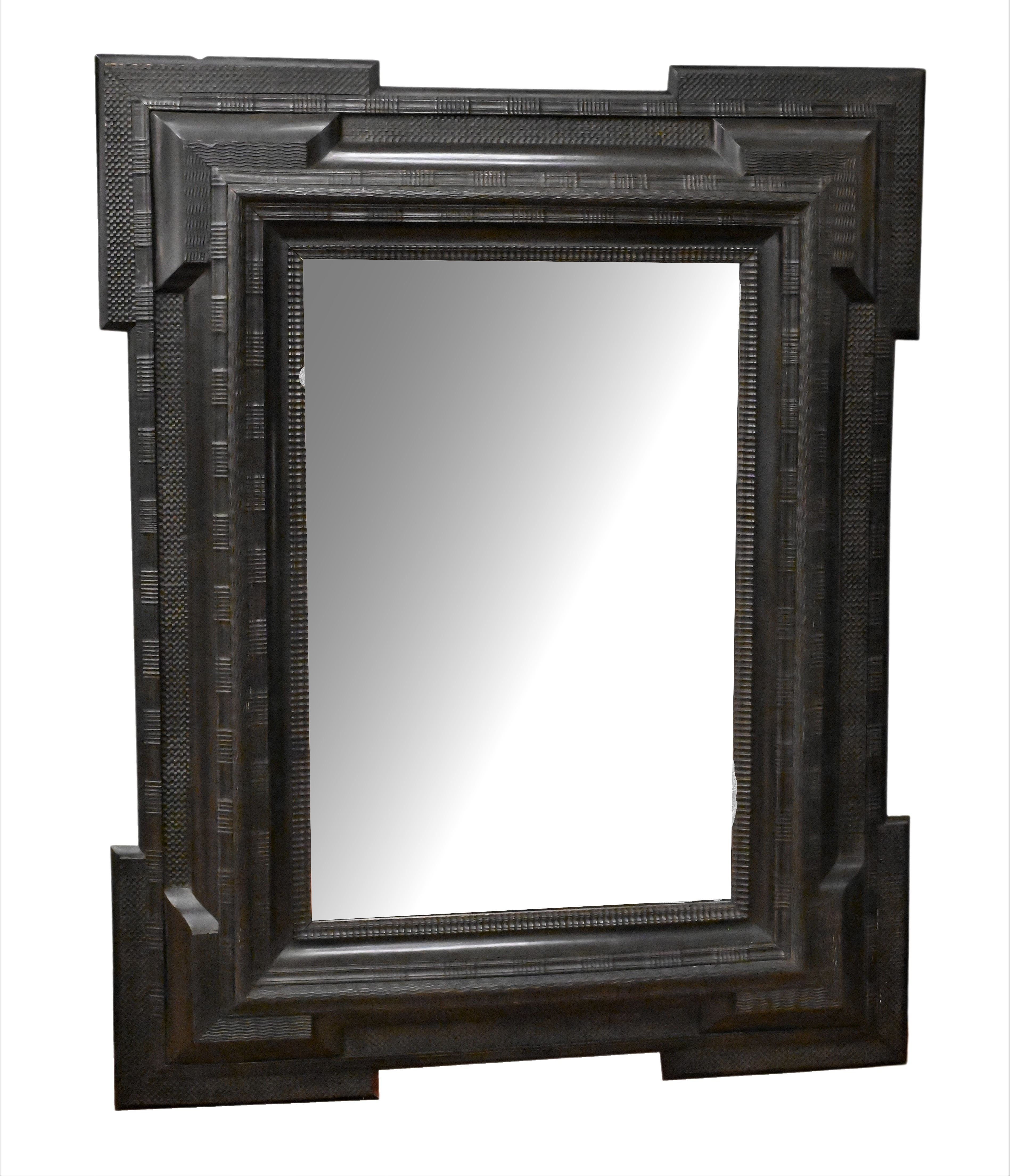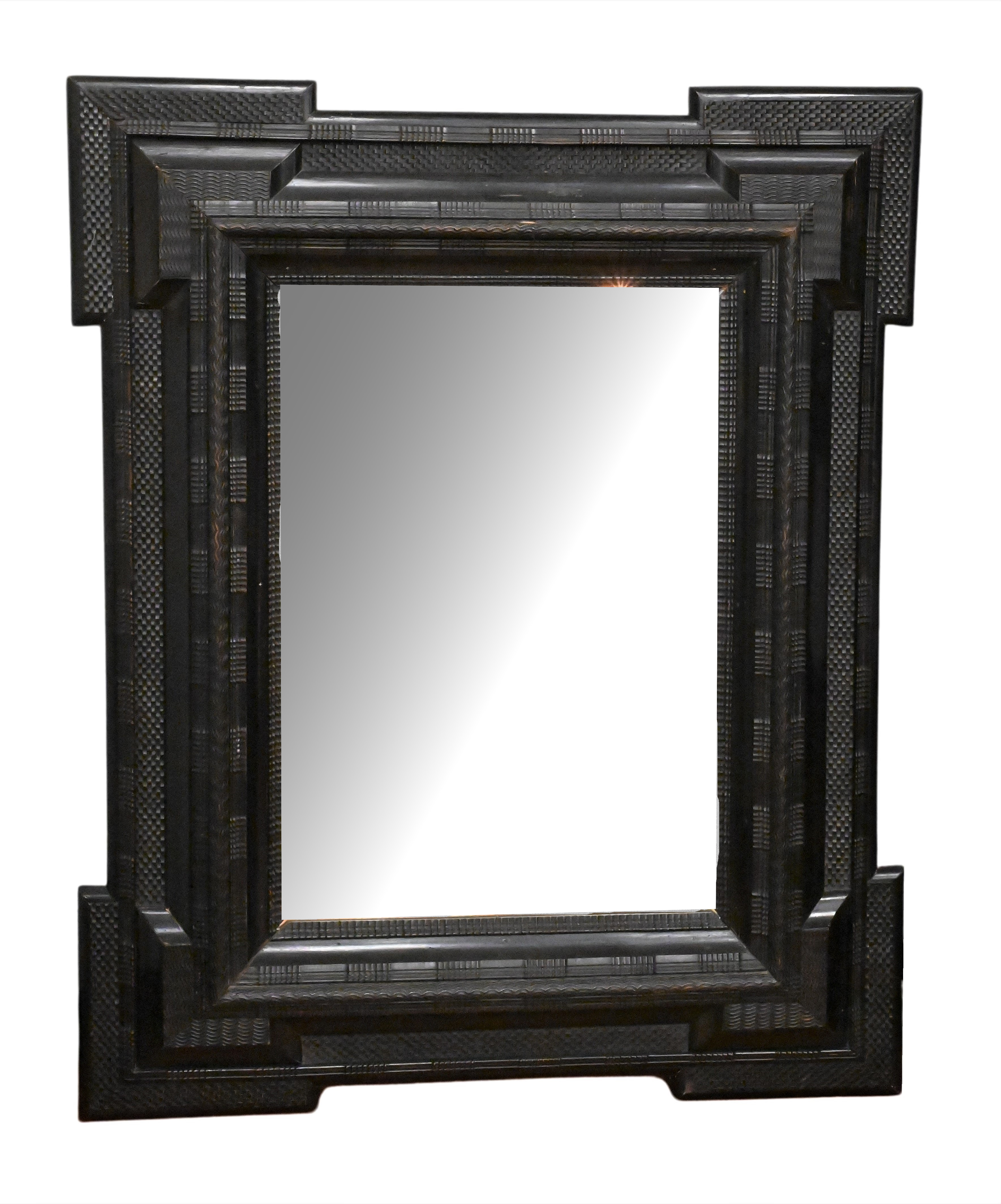 the rectangular plate within a stepped frame carved variously with ripple work, basket weave