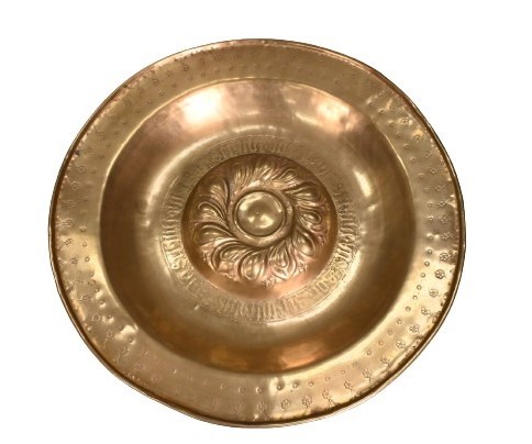 large alms dish, 16 century or later with embossed swirl center design