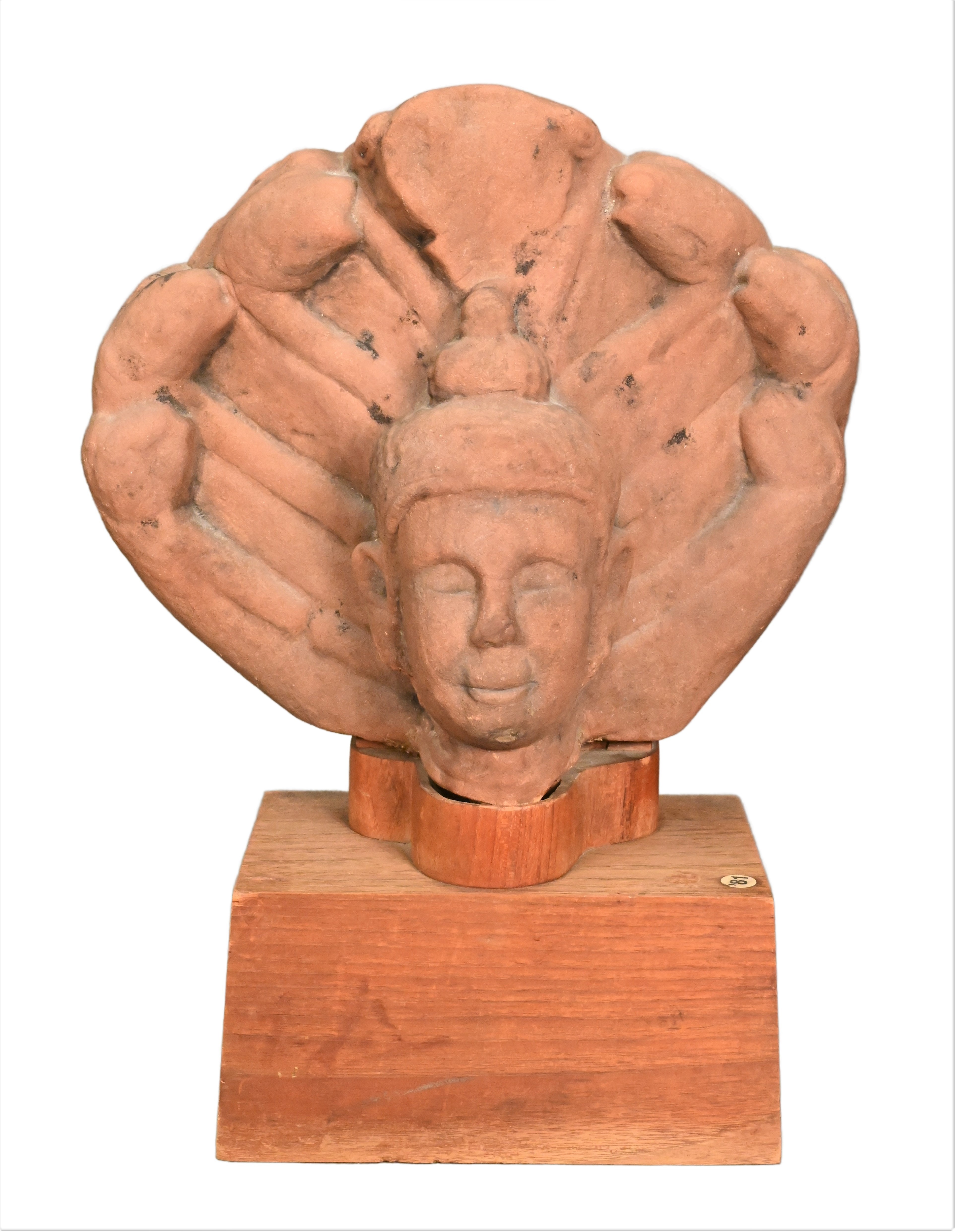 in the form of faces, mounted on snakeskin square bases