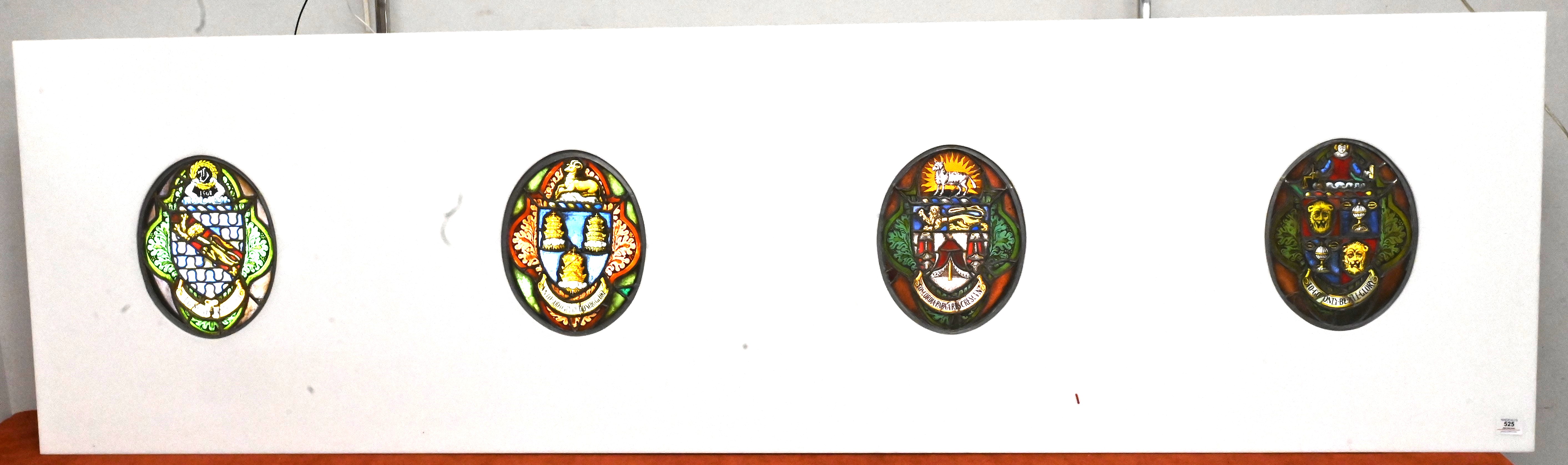 Set of Four Oval Stained-Glass Heraldic Roundel Panels