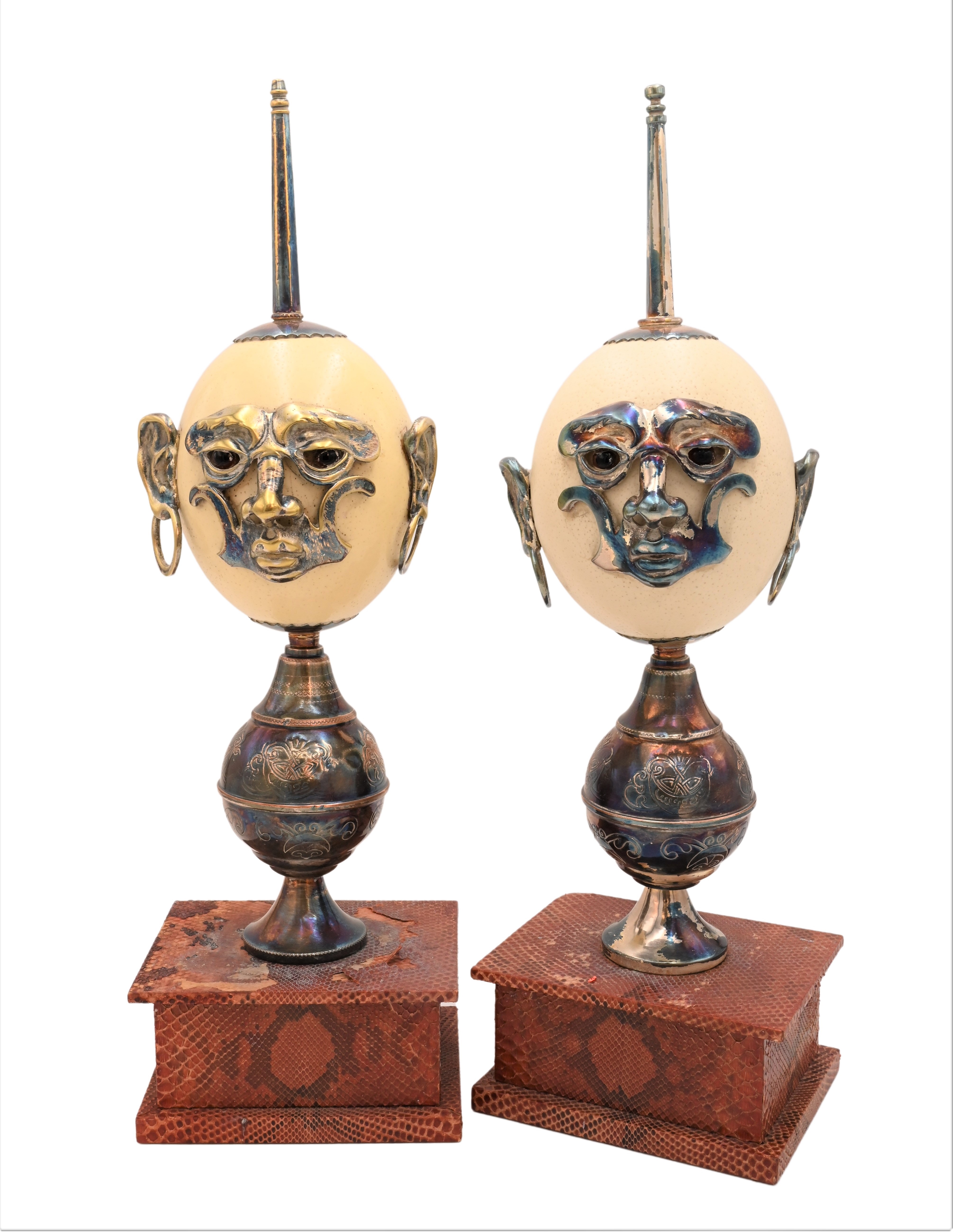 A Pair of Anthony Redmile Metal-Mounted Ostrich Egg Ornaments