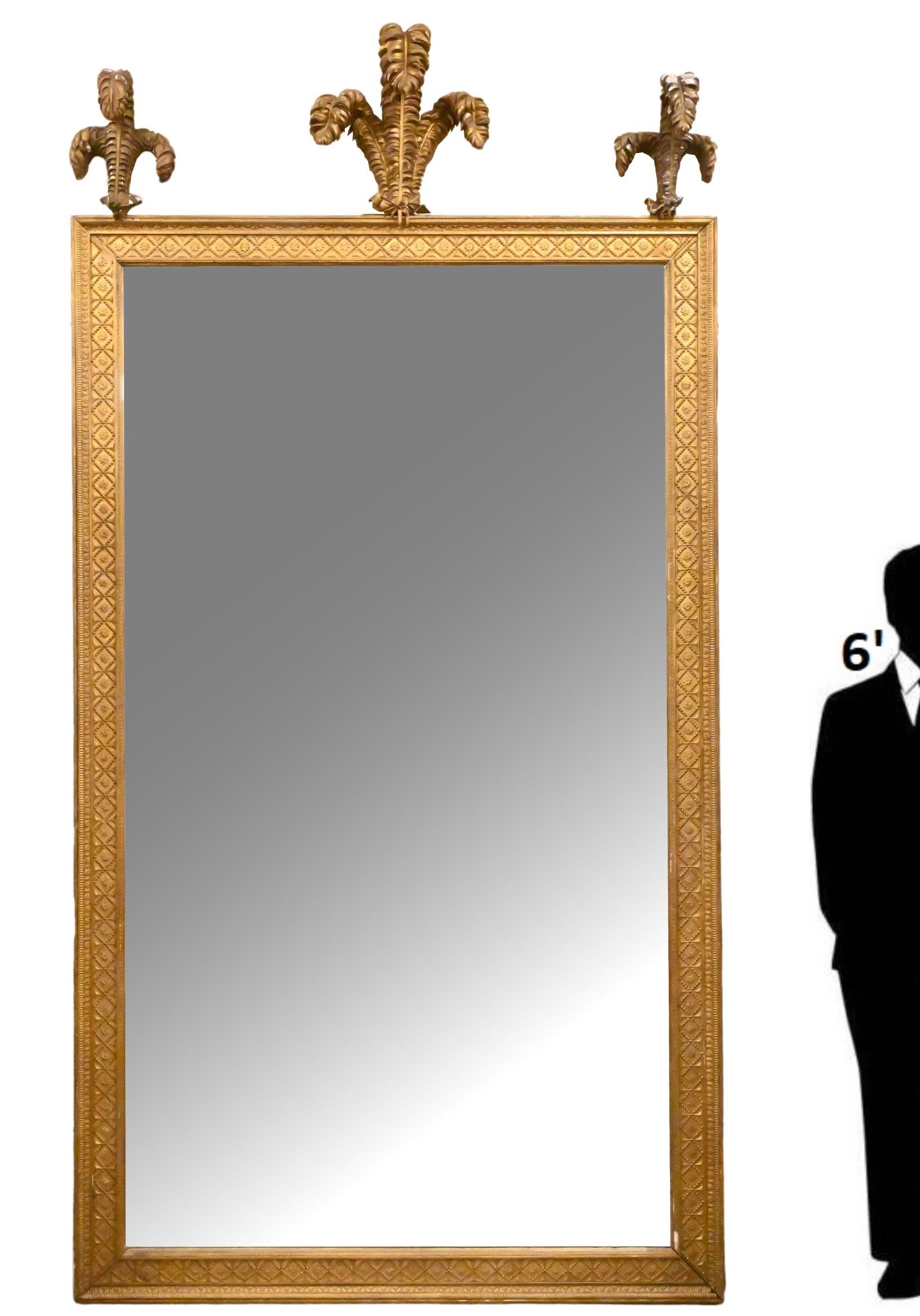 each surmounted with Prince-of-Wales feathers above multiple floral and foliate borders surrounding a rectangular mirror plate
