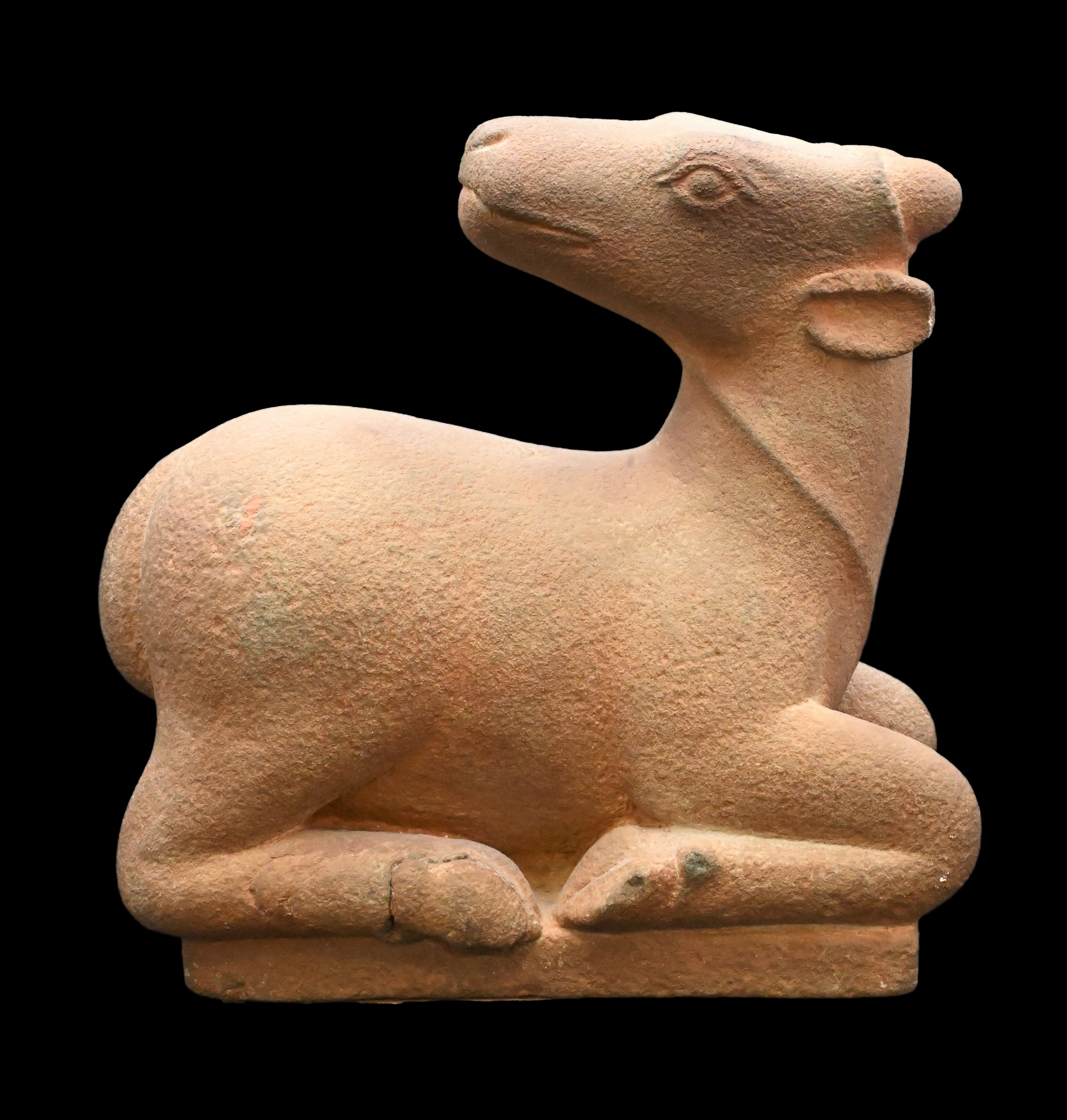 Carved Brownstone or Limestone Recumbent Deer Figure