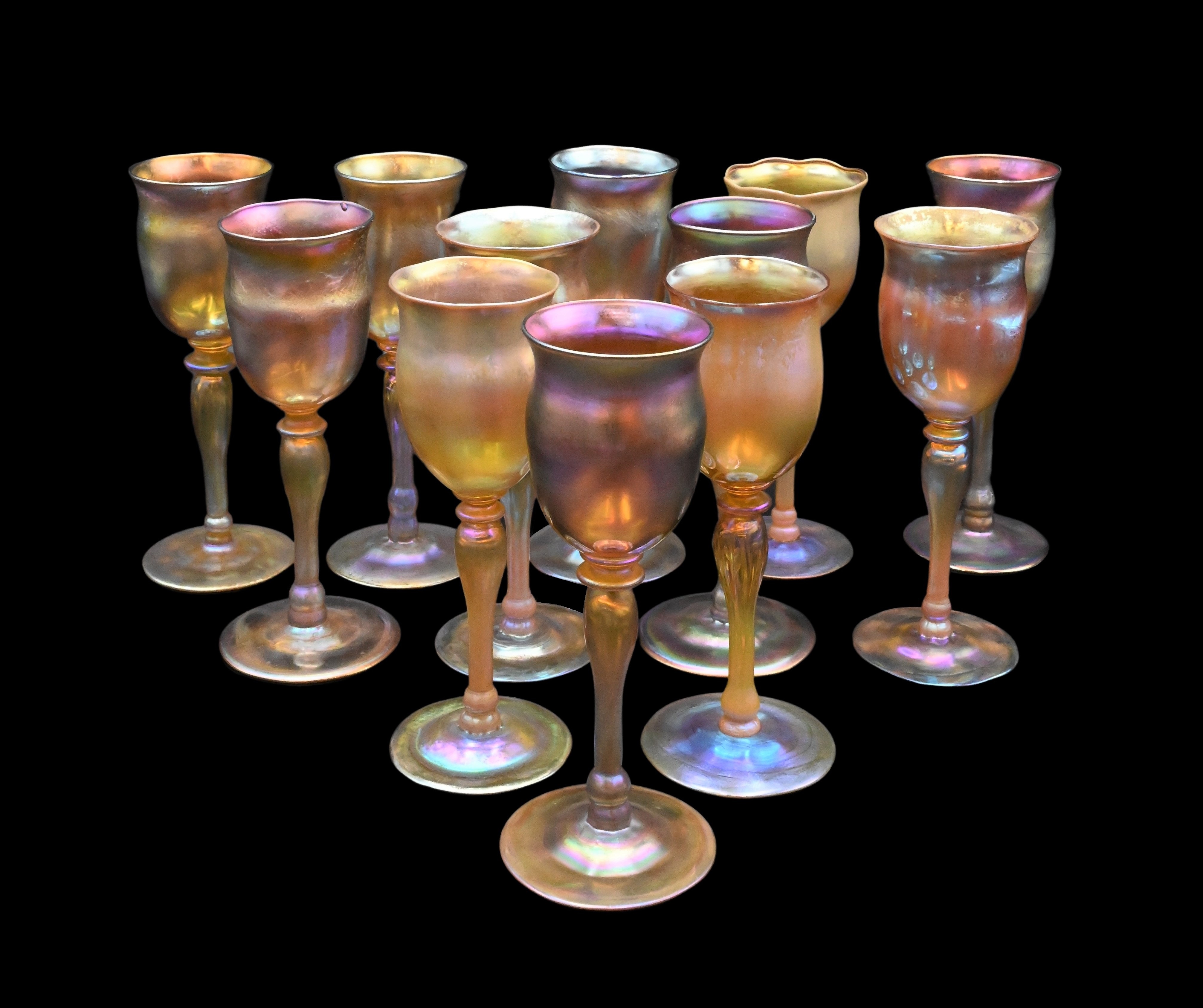 12 Tiffany Studios Favrile Stemmed Wine Glasses