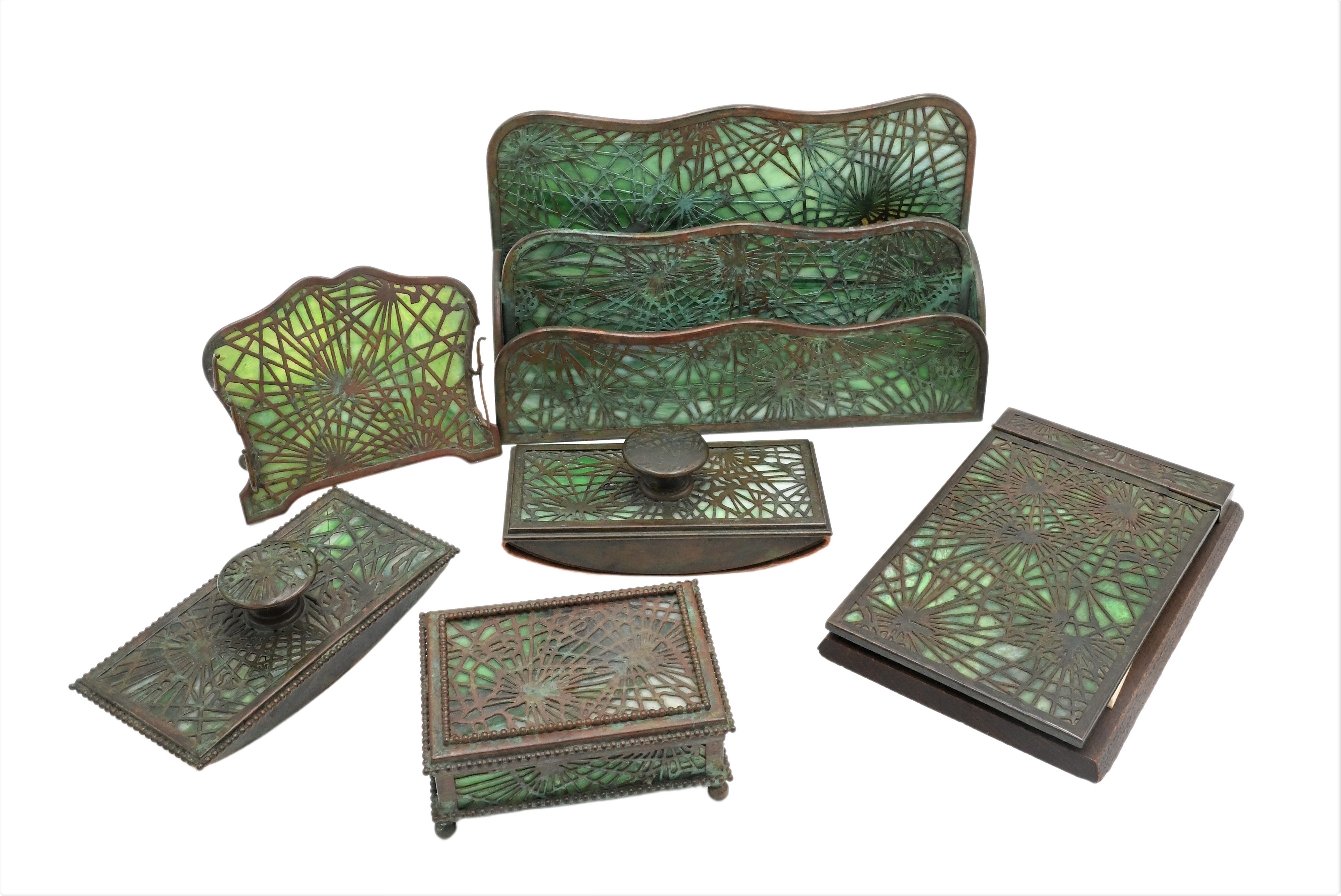 Six Piece Tiffany Studios Pine Needle Desk Set