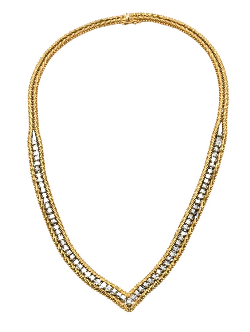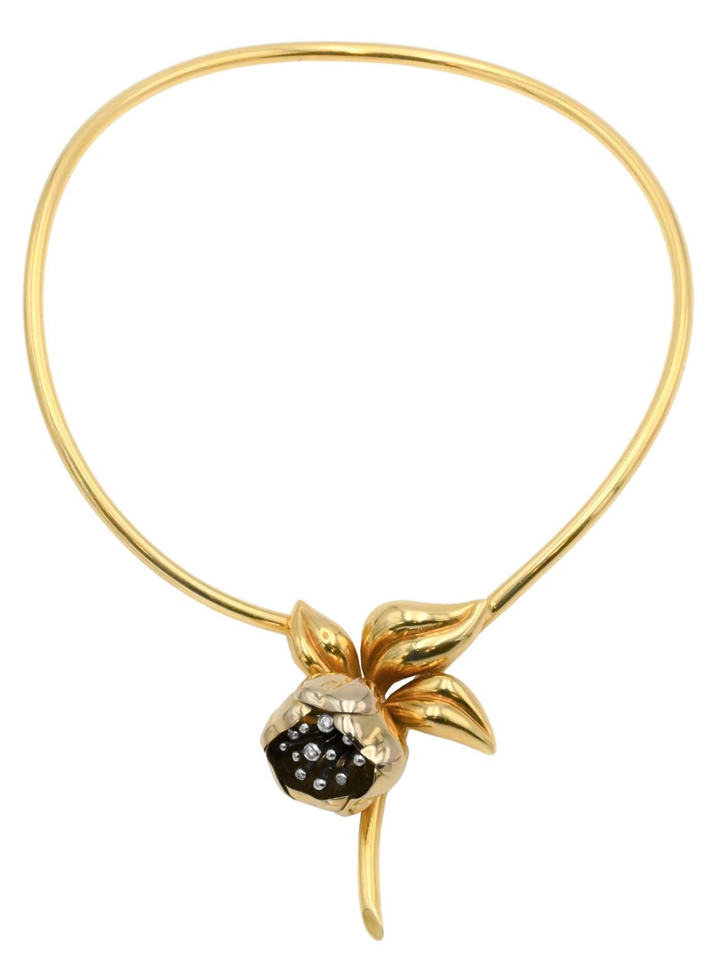 18 Karat Yellow Gold Choker, the large flower, having diamonds inside