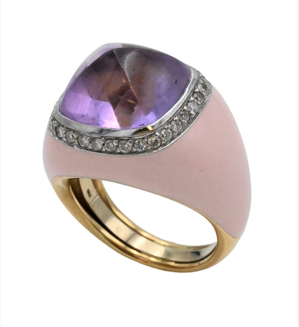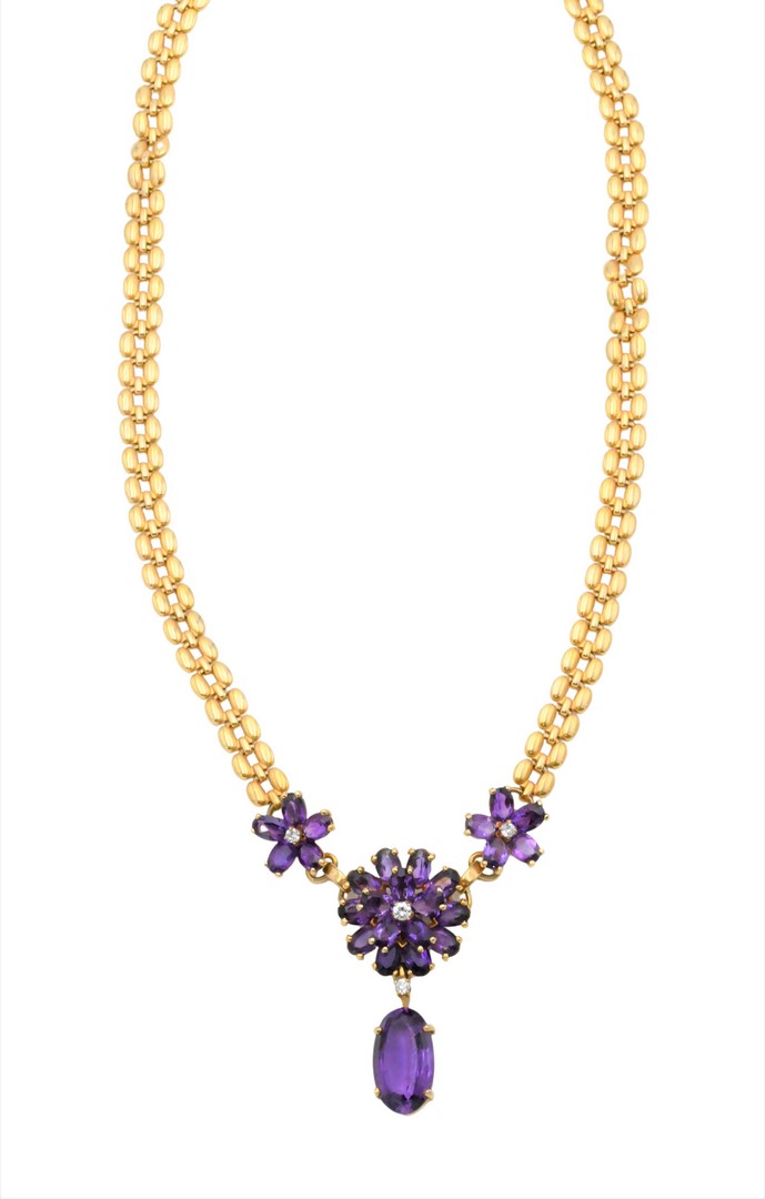 completed by a central amethyst 8.75 carats, set in 18 karat gold