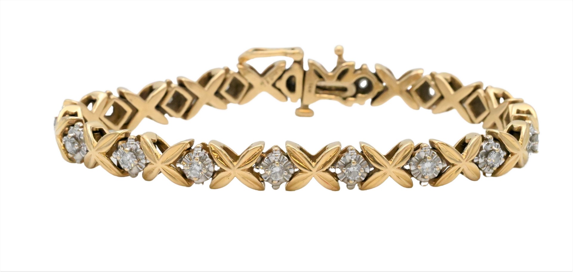 containing five rows of pave set diamonds, approximately 145 round diamonds weighing approximately 2.75 carats, tested 18K, not marked