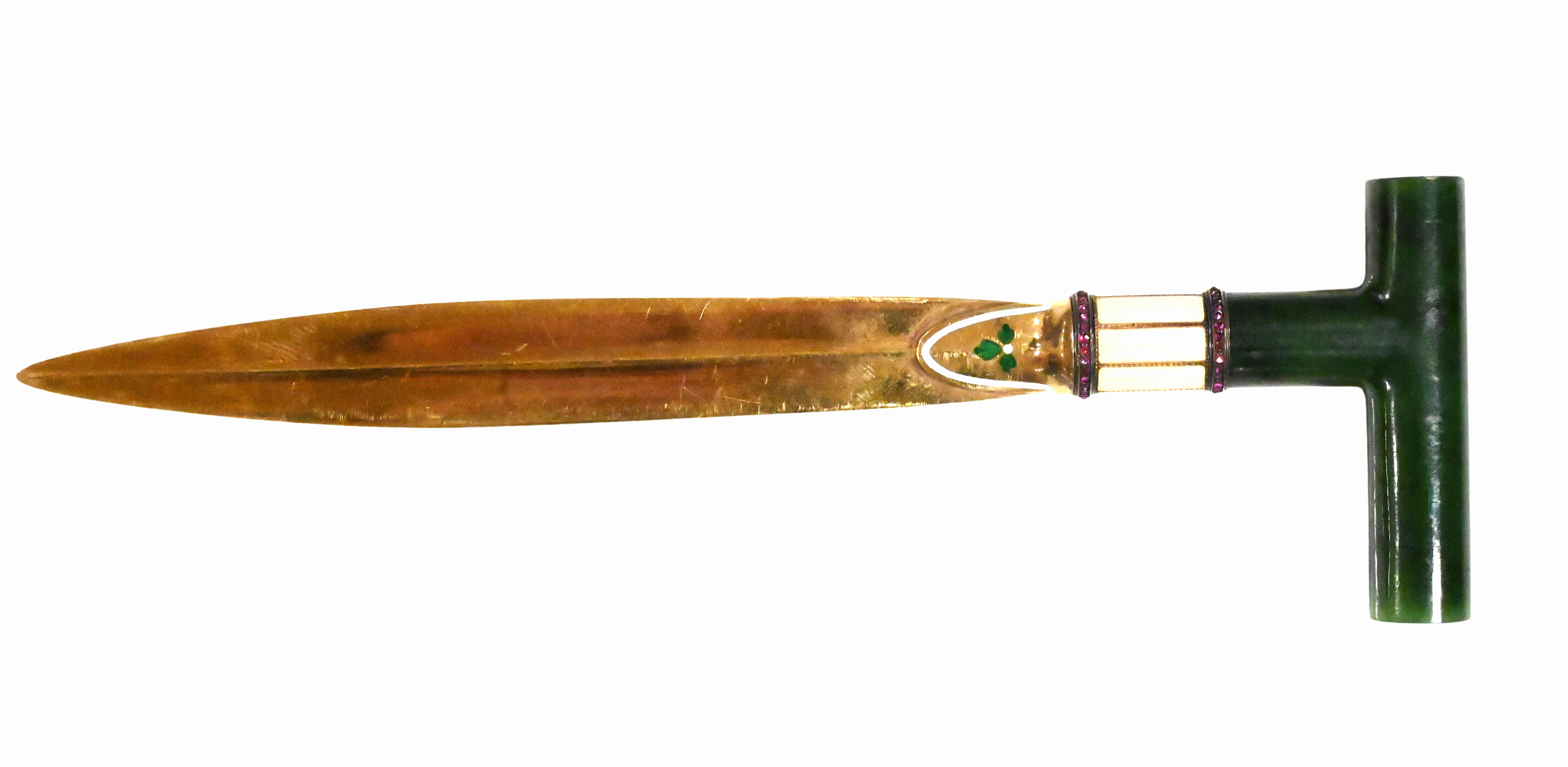 Jeweled Gold Nephrite and Enameled Letter Opener