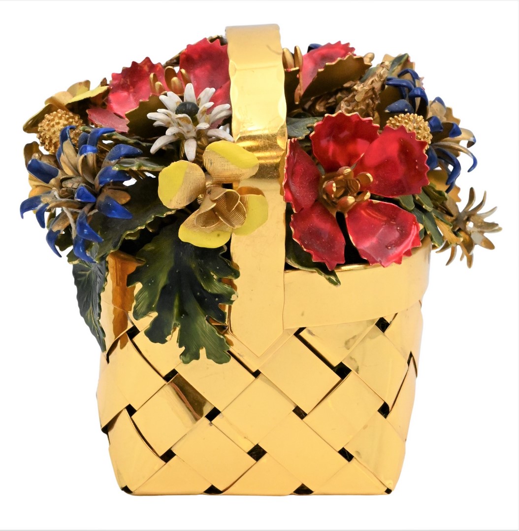 Cartier Gilt Sterling Silver and Enameled Flower Basket