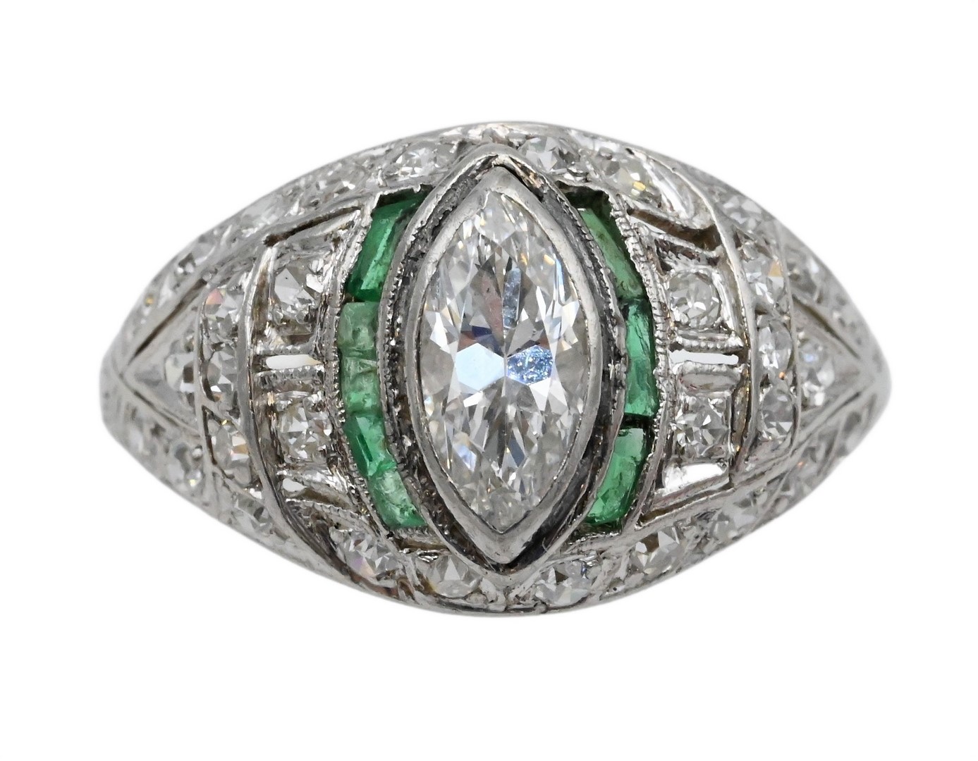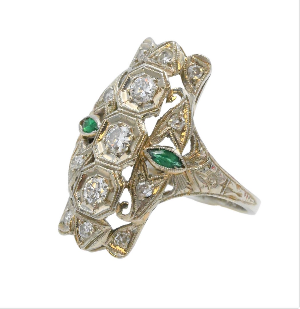 largest three approximately .25 carats each, filigree setting, along with two emeralds