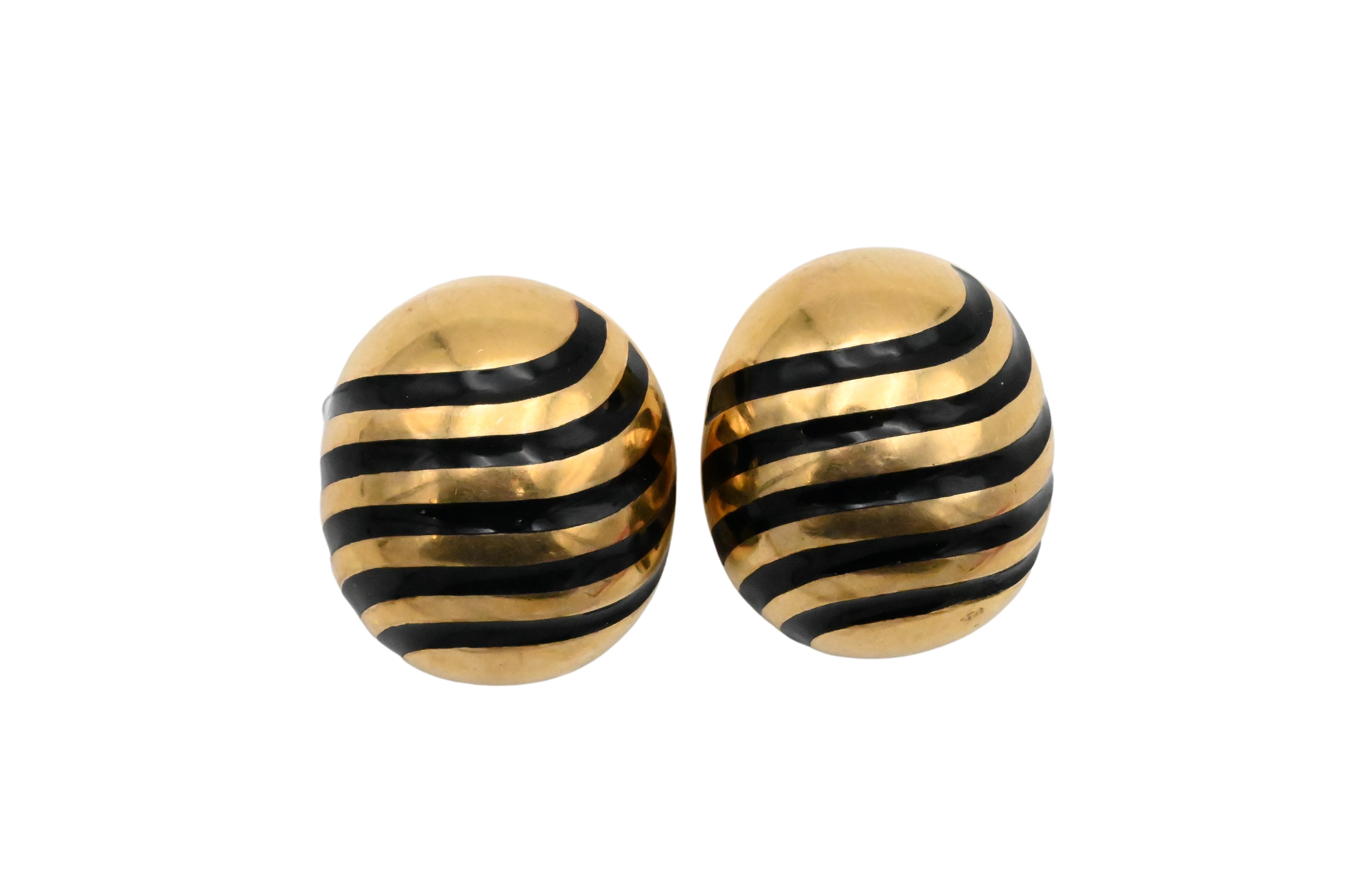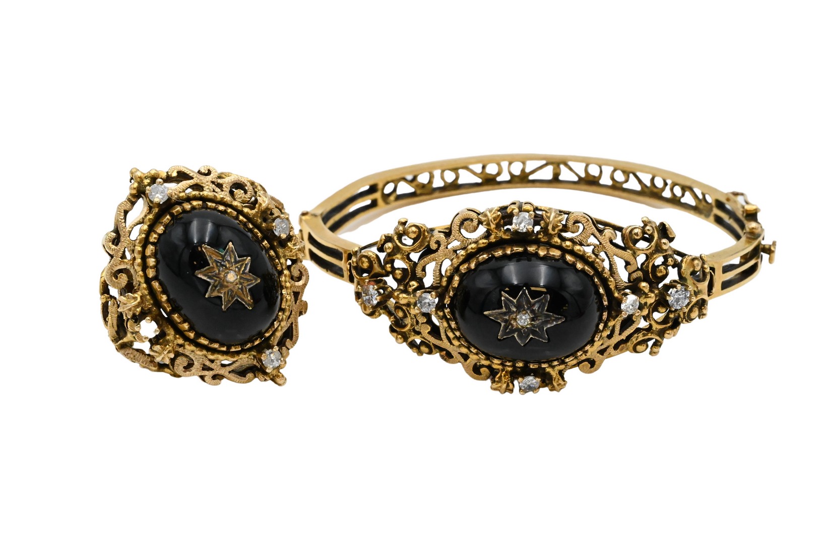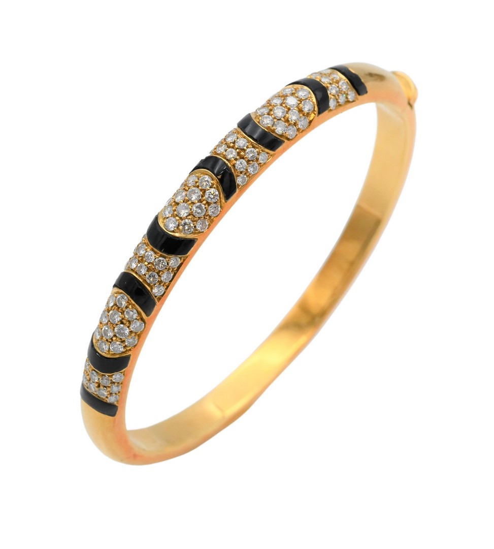 18 Karat Yellow Gold Black Enamel and Diamond Bangle Bracelet