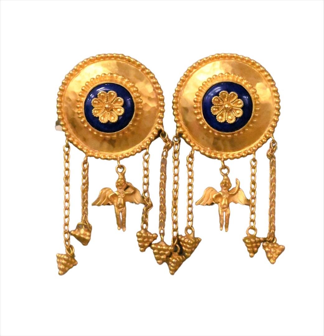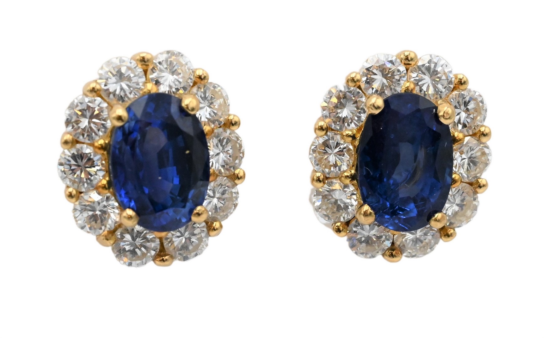Pair of 18 Karat Yellow Gold Sapphire and Diamond Earrings