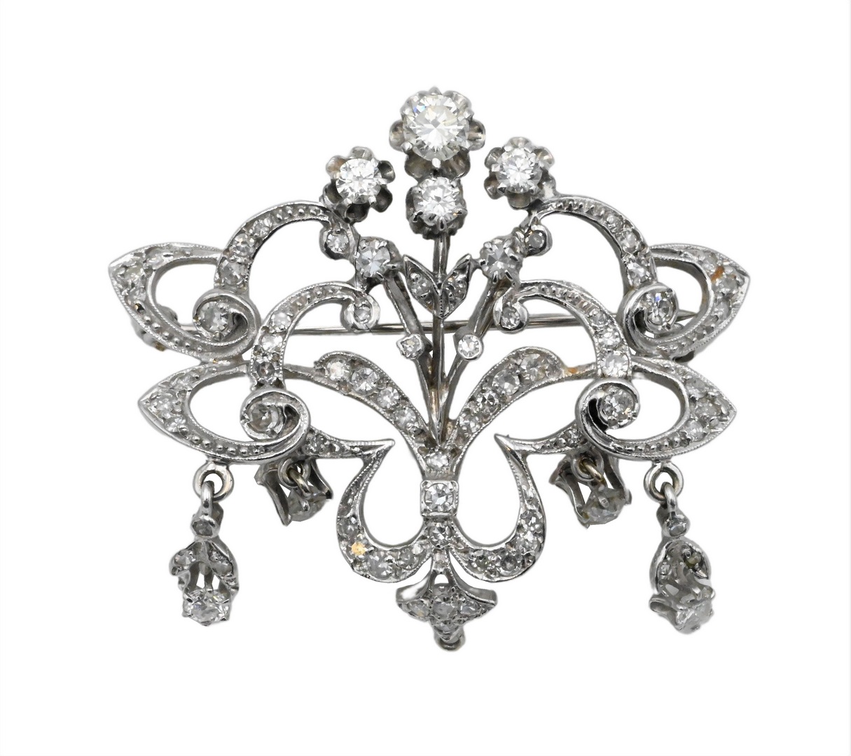 each having pear shaped drop, 8 marquis diamonds, 42 baguettes, along with 1 small round