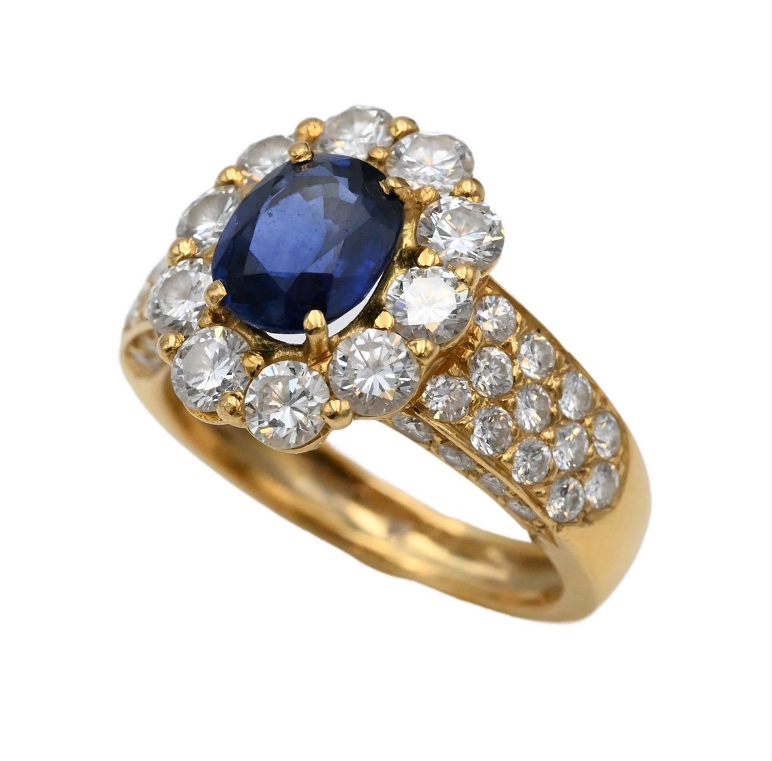18 Karat Yellow Gold Sapphire and Diamond Ring