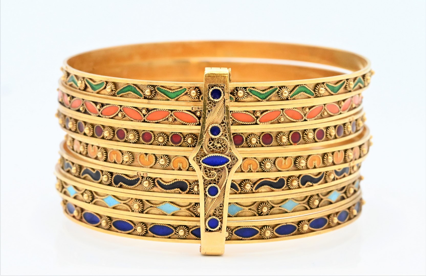 Set of Seven 18 Karat Yellow Gold Bangle Bracelet