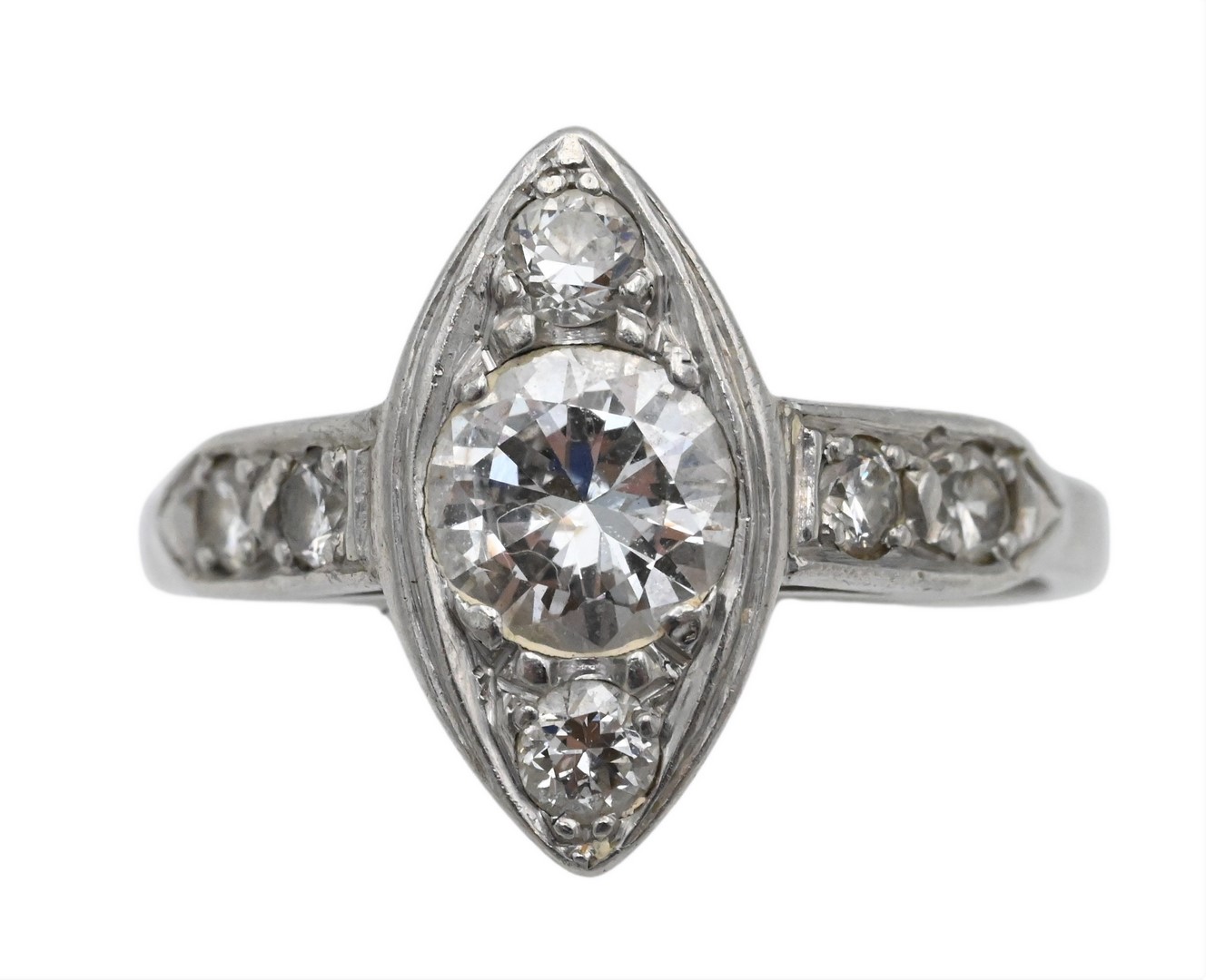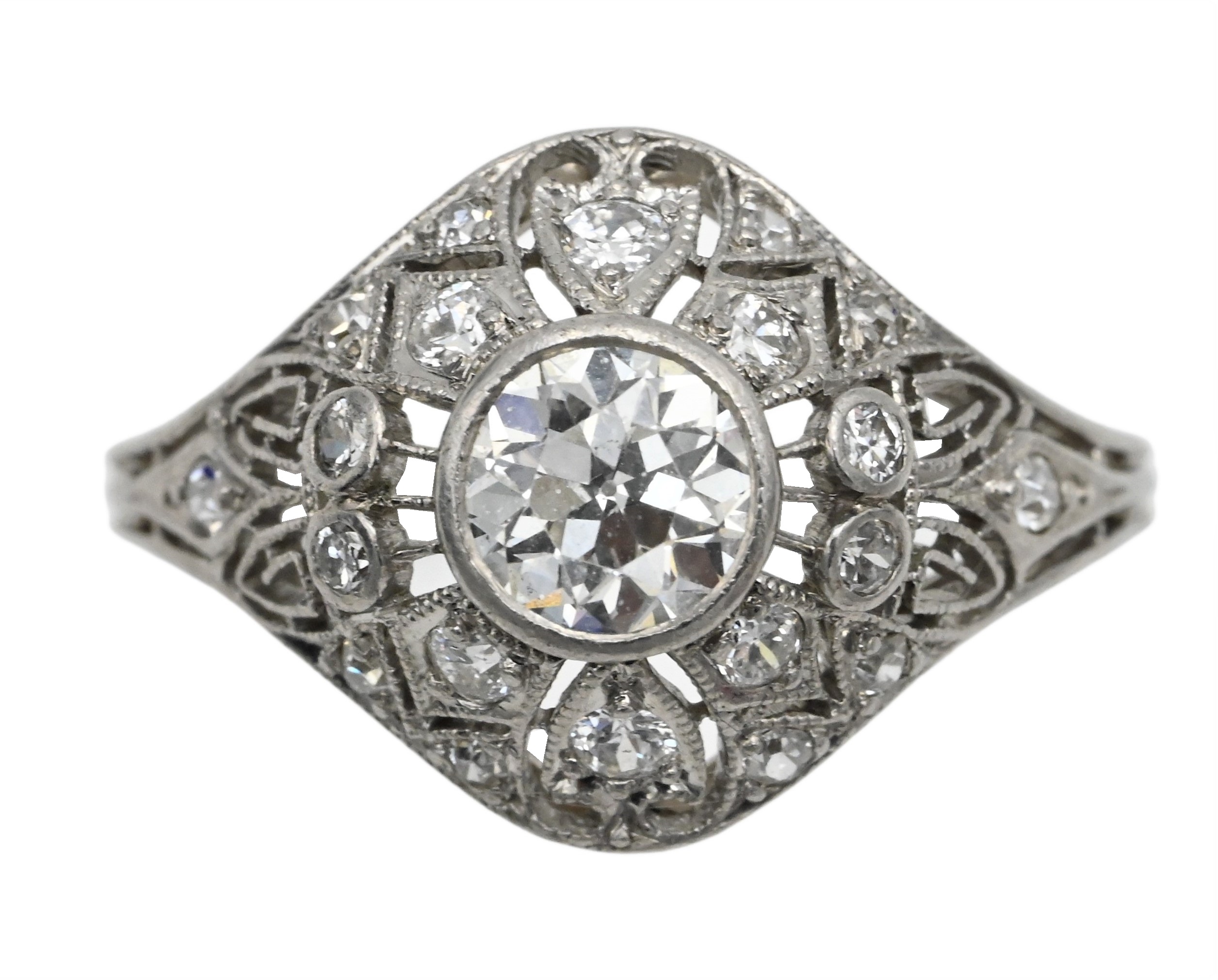 set with center 14 karat white gold, including 15 raised diamonds along with 46 small diamonds