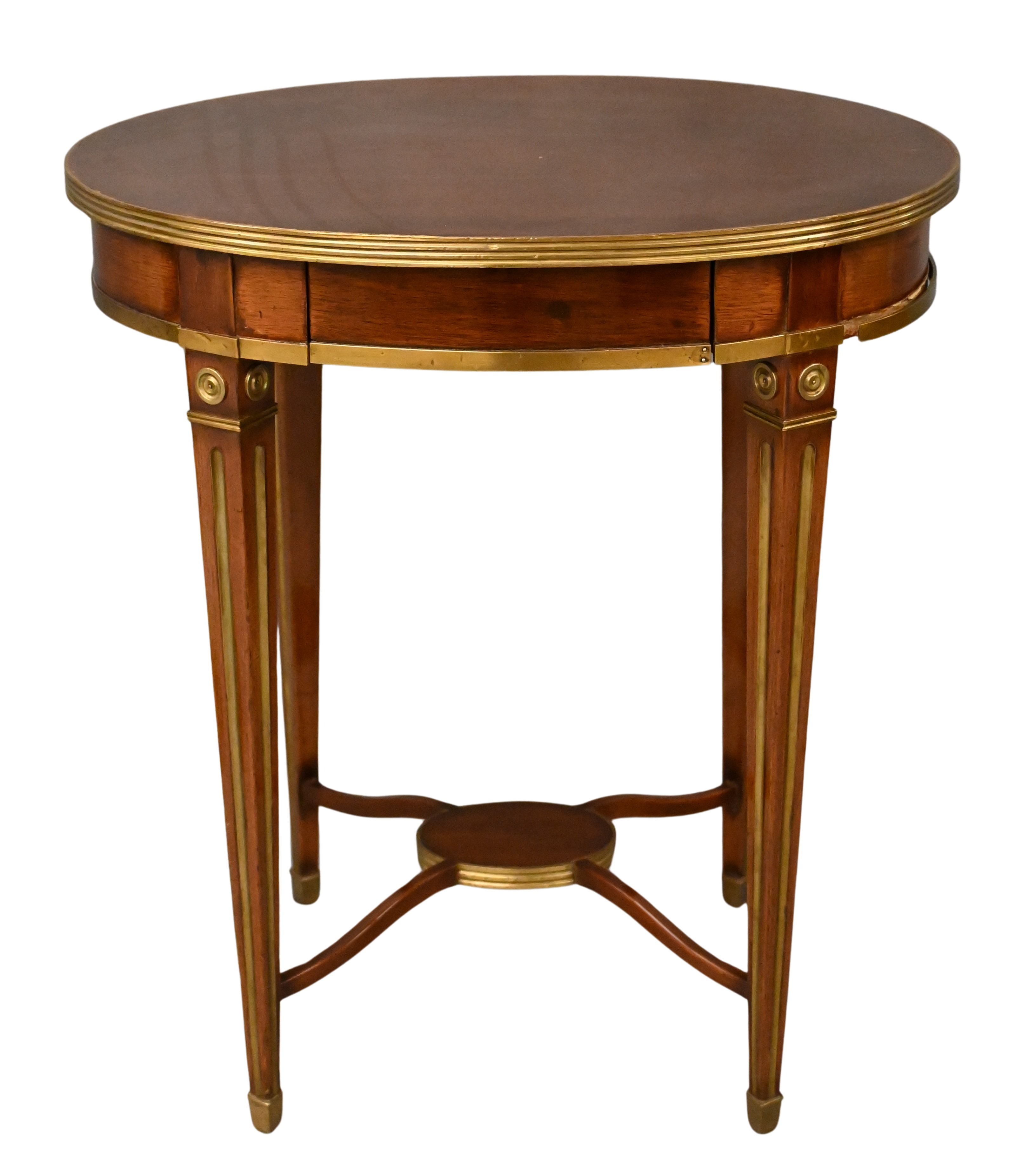 Condition: very good, condition, slight surface scratching, slight brass inlay lifting to two of the legs, possible slight sun fading to brass banded area to top