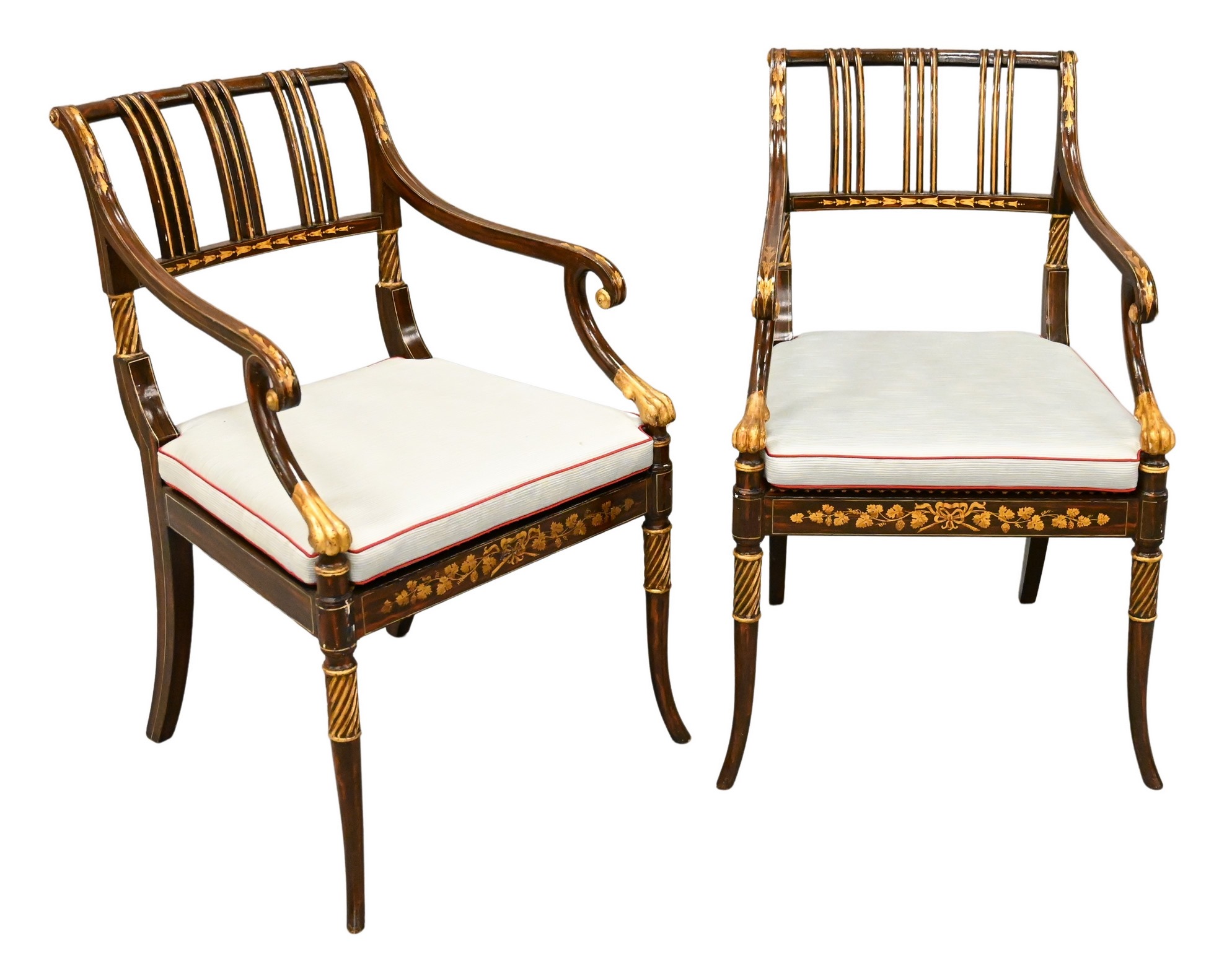 Pair of Late Georgian Painted and Gilt Armchairs