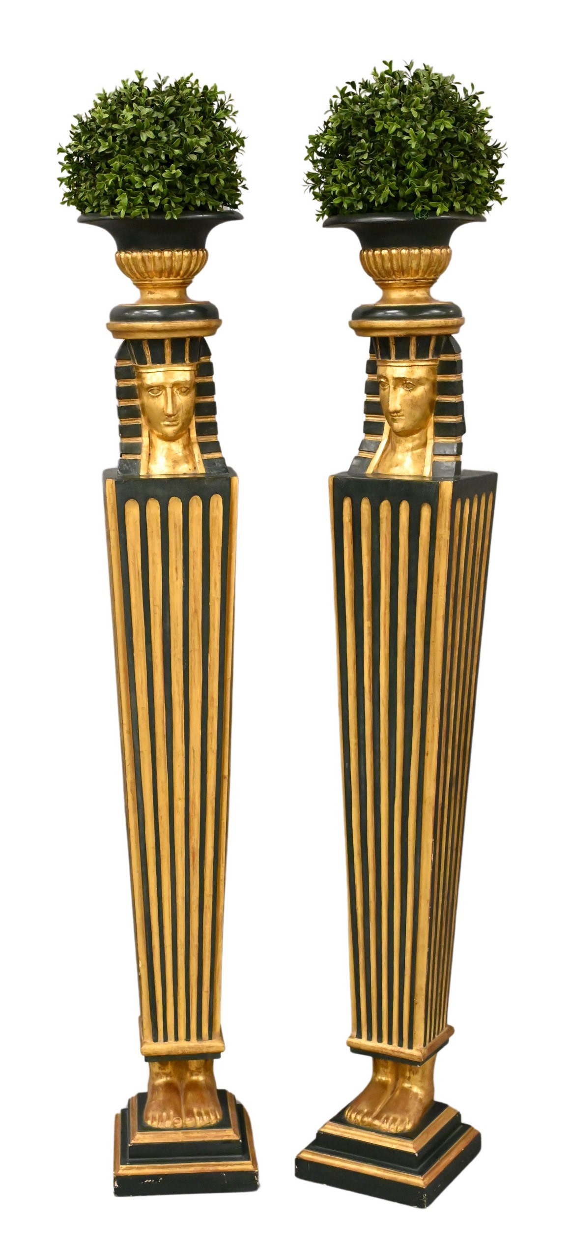 Pair of Neoclassical -Painted and Parcel- Gilt Egyptian Revival Figural Pedestals