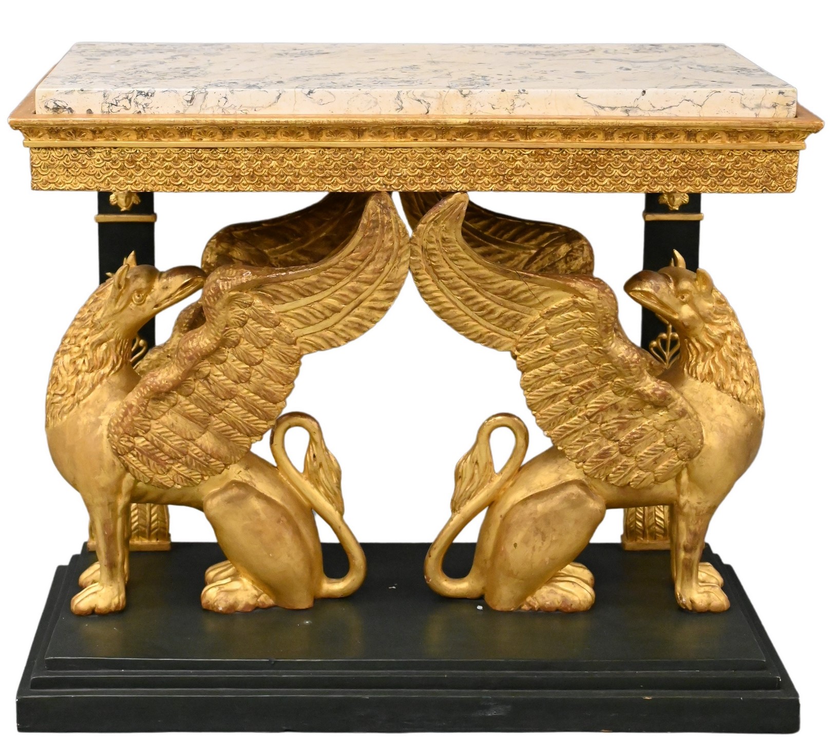 having carved gilt griffin supports and scagliola inset top, early 19th century