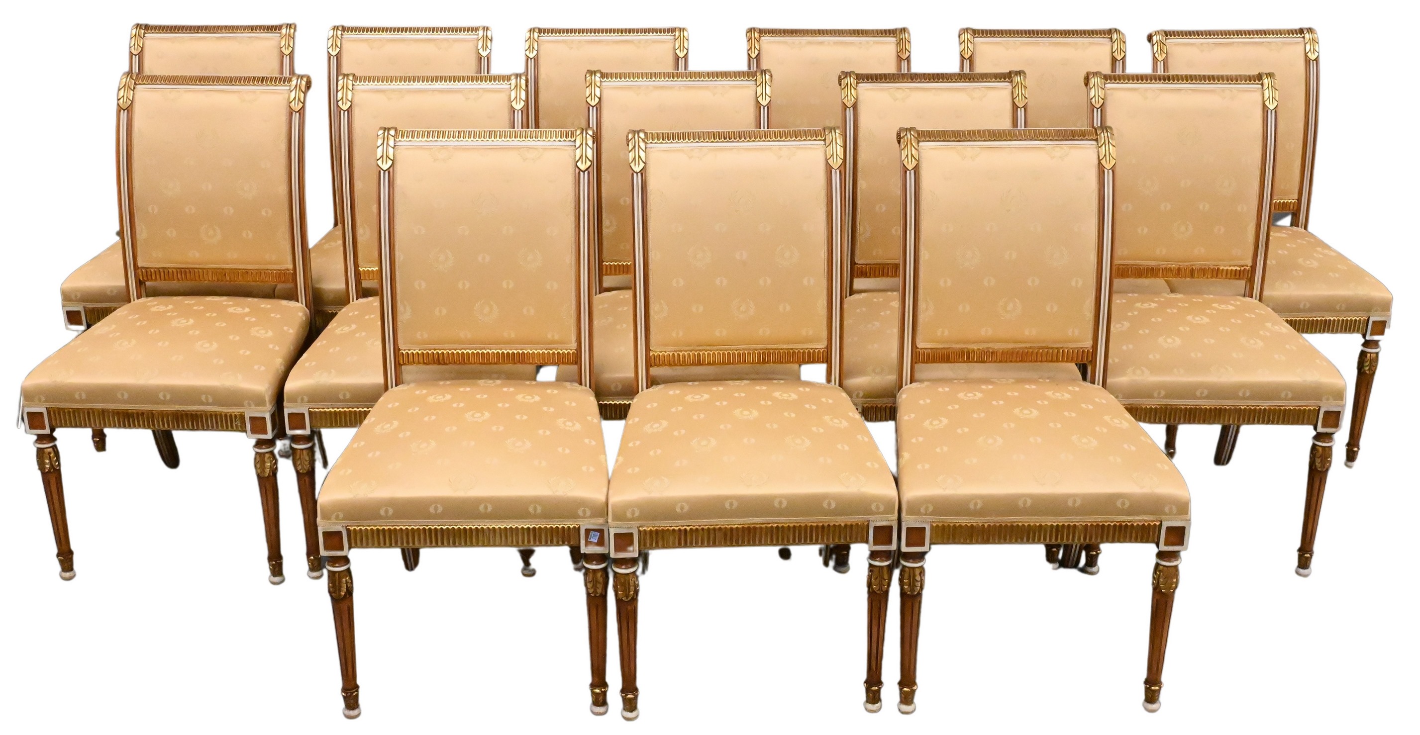 Set of 14 Louis XVI Style White and Giltwood Chairs