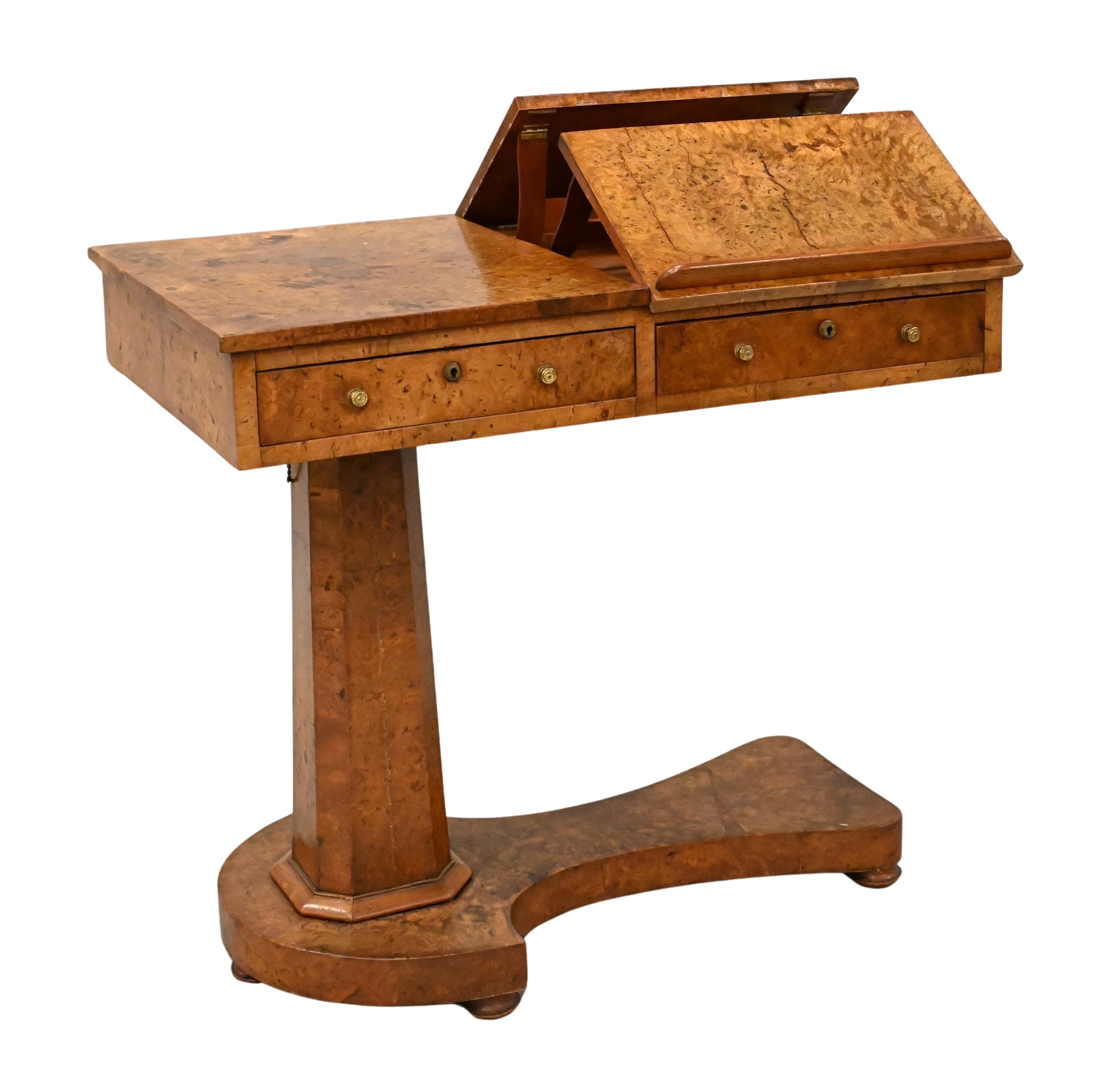 Condition: presents well, top and sides having age cracks, slight loss to veneered sides, dime sized repair to shaft, slight veneer lifting to base