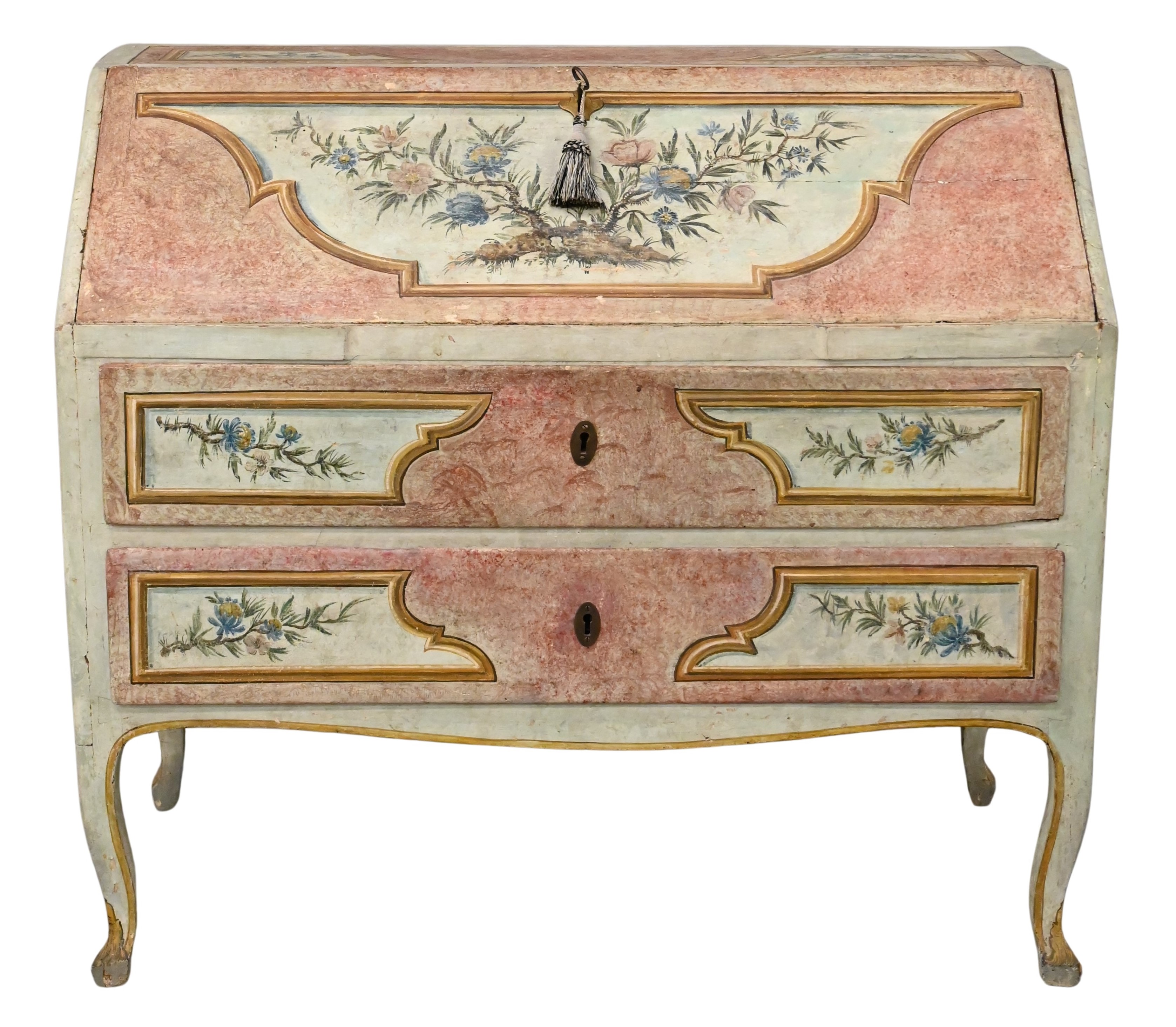 Italian Polychrome Painted Drop Front Writing Desk