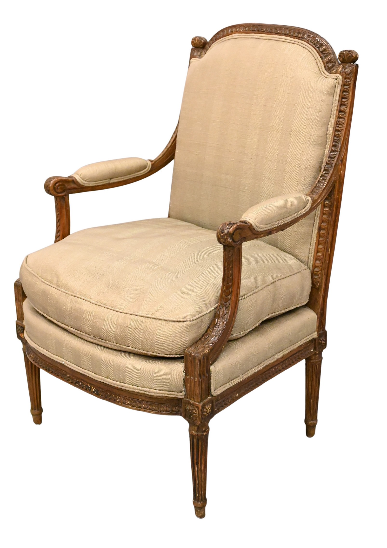 Pair of Classical Style Fruitwood and Upholstered Bergeres
