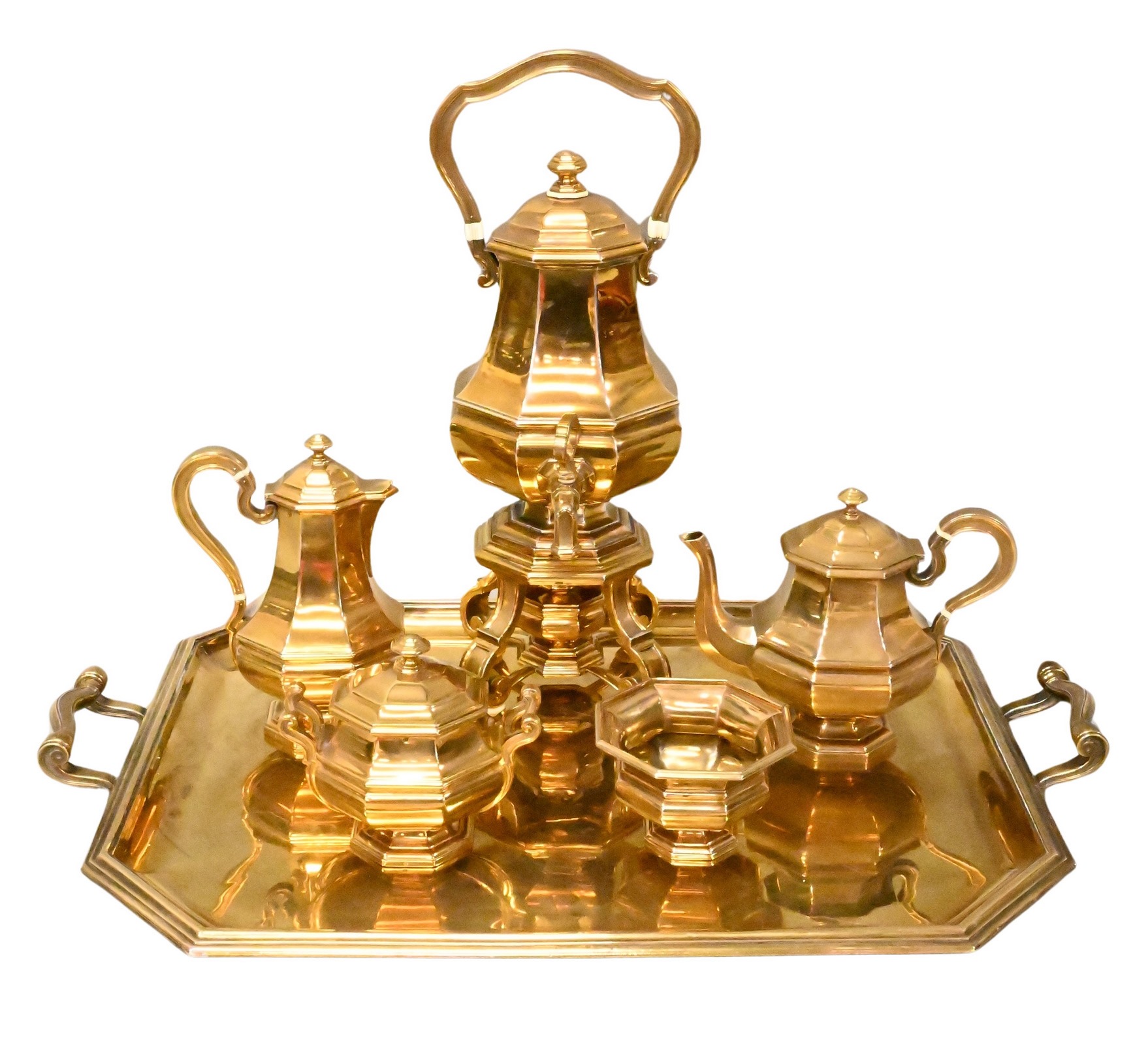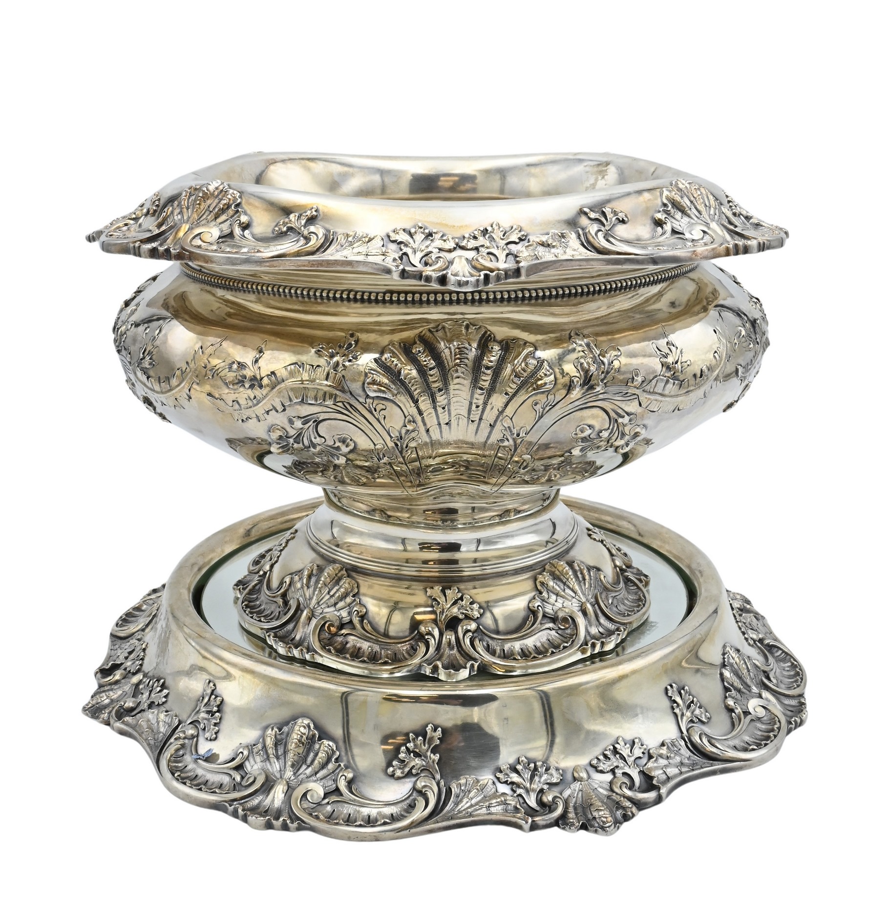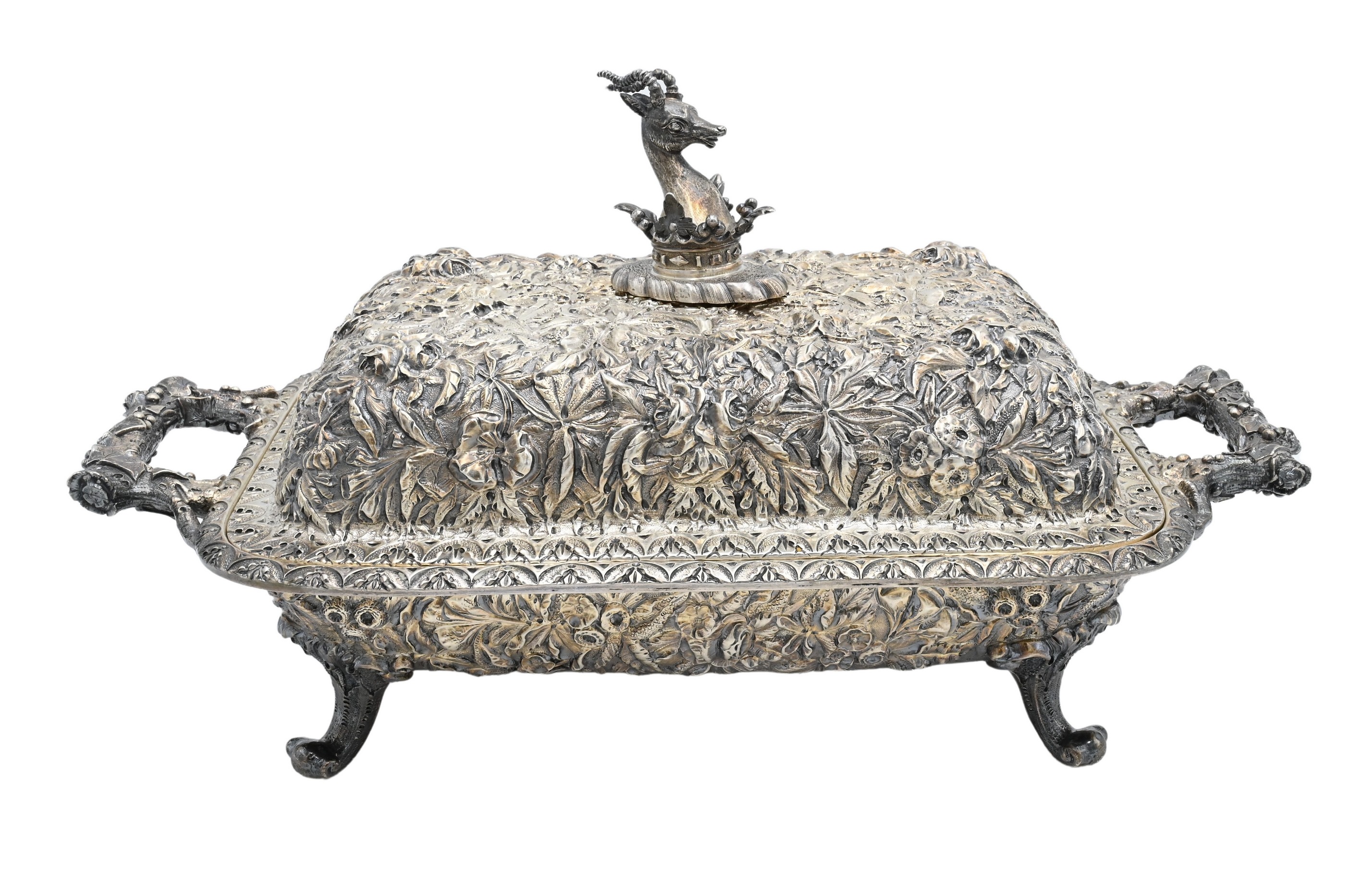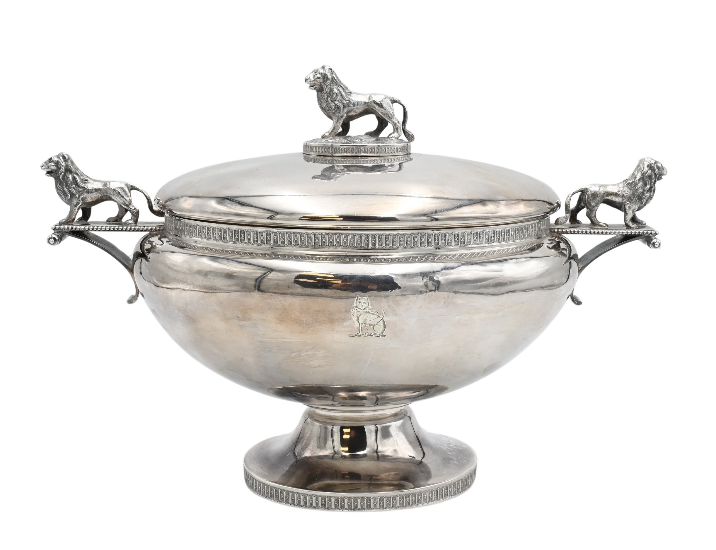 in custom fitted case, to include 10 dinner forks, 12 luncheon forks, 12 salad forks, 12 ice cream forks, one lemon fork, one cake/dessert fork, one olive/pickle fork, one large serving fork, one fish spoon, 12 cocktail forks, 11 soup spoons, 12 teaspoons, 12 demitasse spoons, one large serving spoon, three place spoons, one jelly spoon, one ladle, one tong, 12 dinner knives, 12 luncheon knives, 12 butter knives, one slotted server, one sugar spoon, one cheese server, one cake server, one steak carver, one steak fork, one roast carver, one roast fork, all marked for Gorham