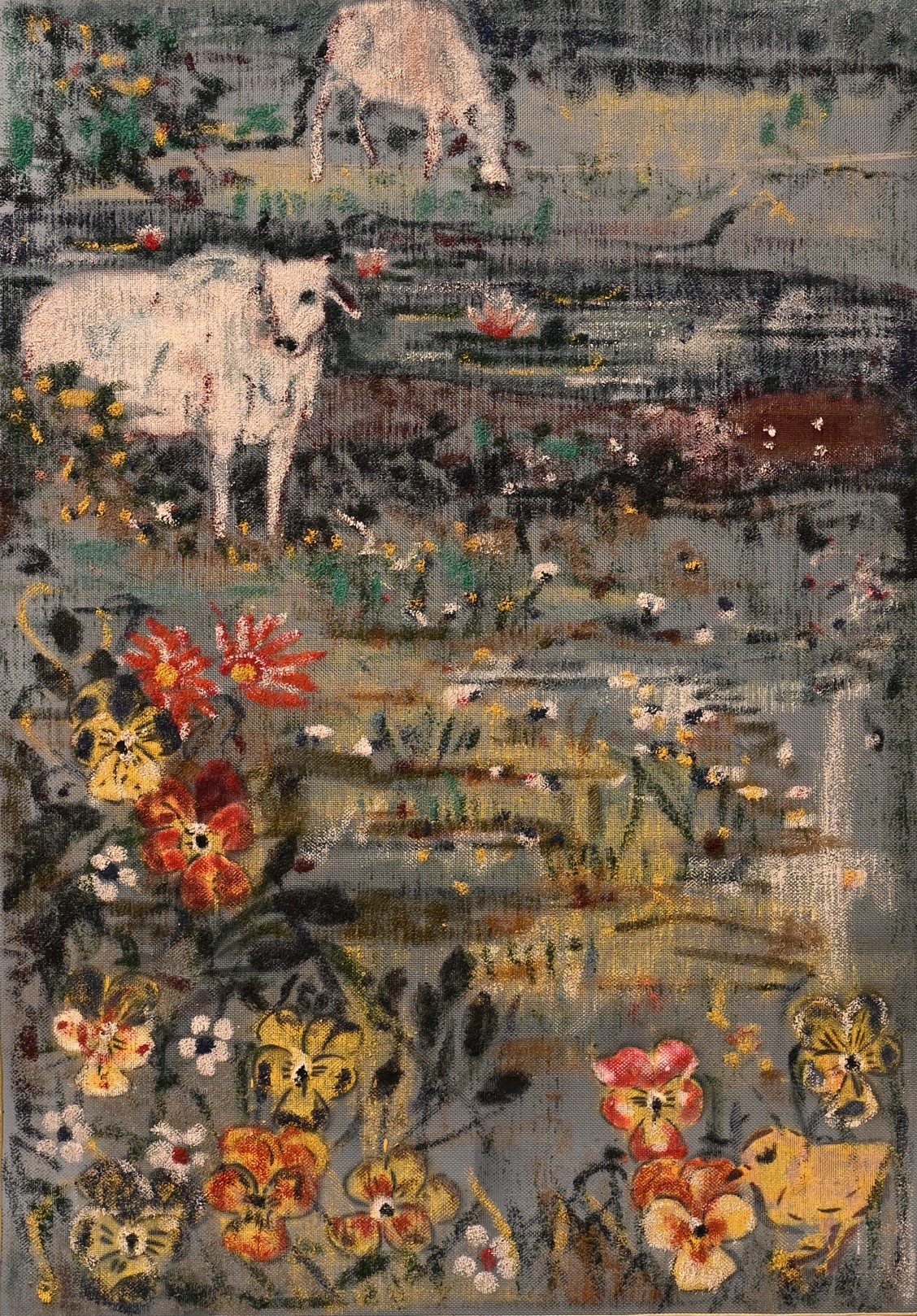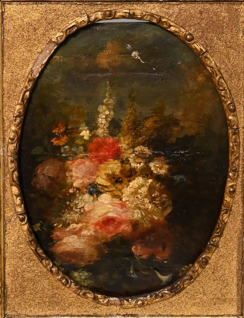 Condition: relined canvas, slight undulation to canvas, craquelure, some paint loss upper right