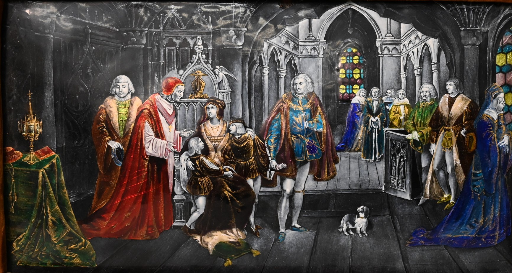 Limoges Hand Painted Enamel Plaque Depicting Interior Setting with Figures