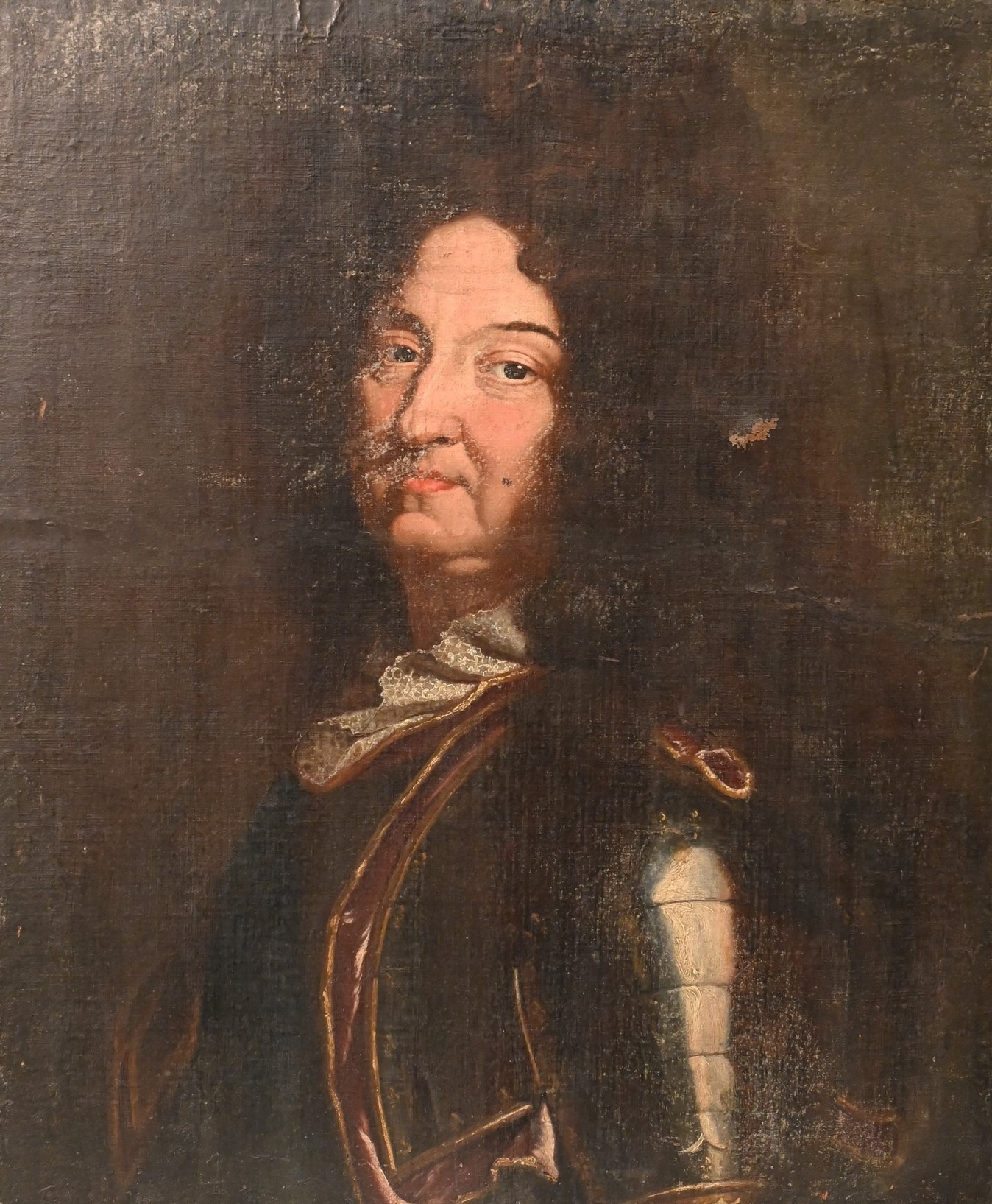 Condition: relined, surface grime, wear, minor paint loss, unframed
