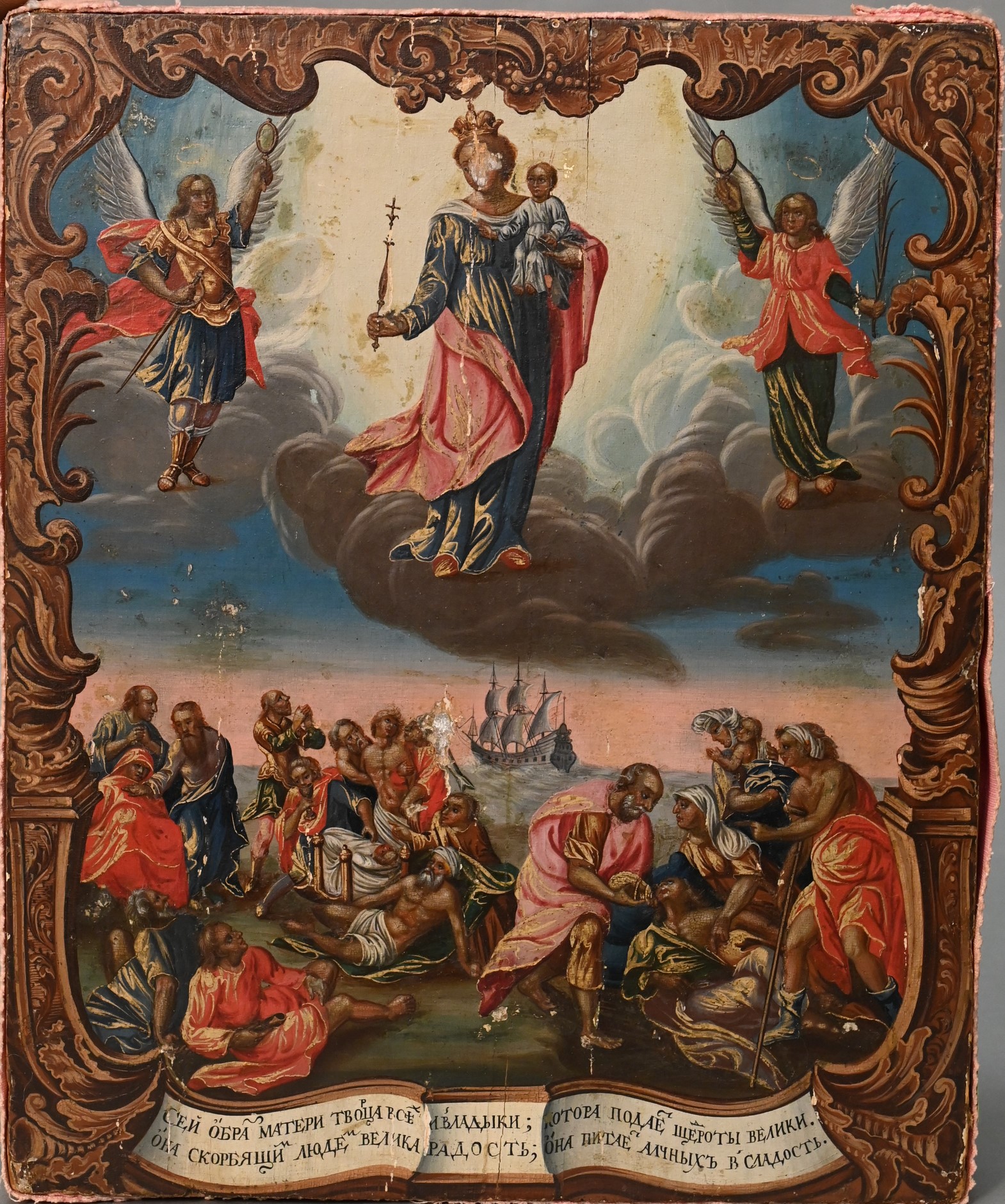 Rough translation of bottom inscription “This is the image of the mother of the creator of all, there is great joy for the people who mourn, she turns their grief sweet”